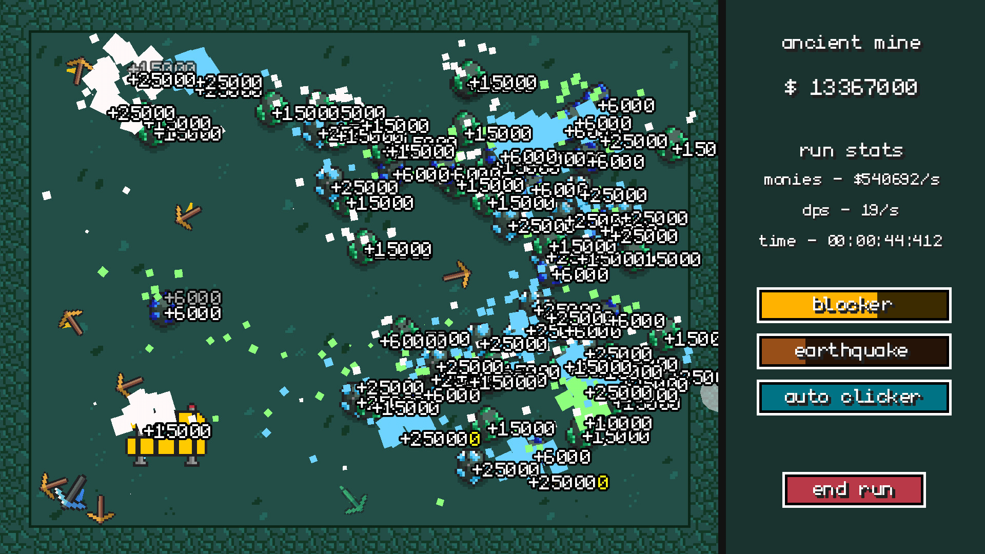 Pickochet is a short, incremental mining game where you mine ore, upgrade pickaxes, unlock abilities and discover new mining sites.