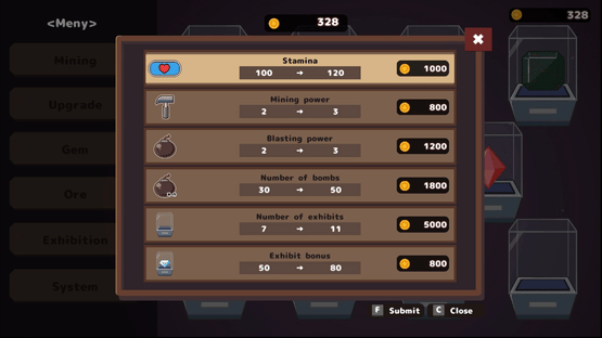 Ore Mania is a mining game where you dig, collect, and earn by exhibiting ores and gems. Use pickaxes and bombs to dig deeper underground, strengthen your gear with the resources you find, and discover rare and valuable ores.