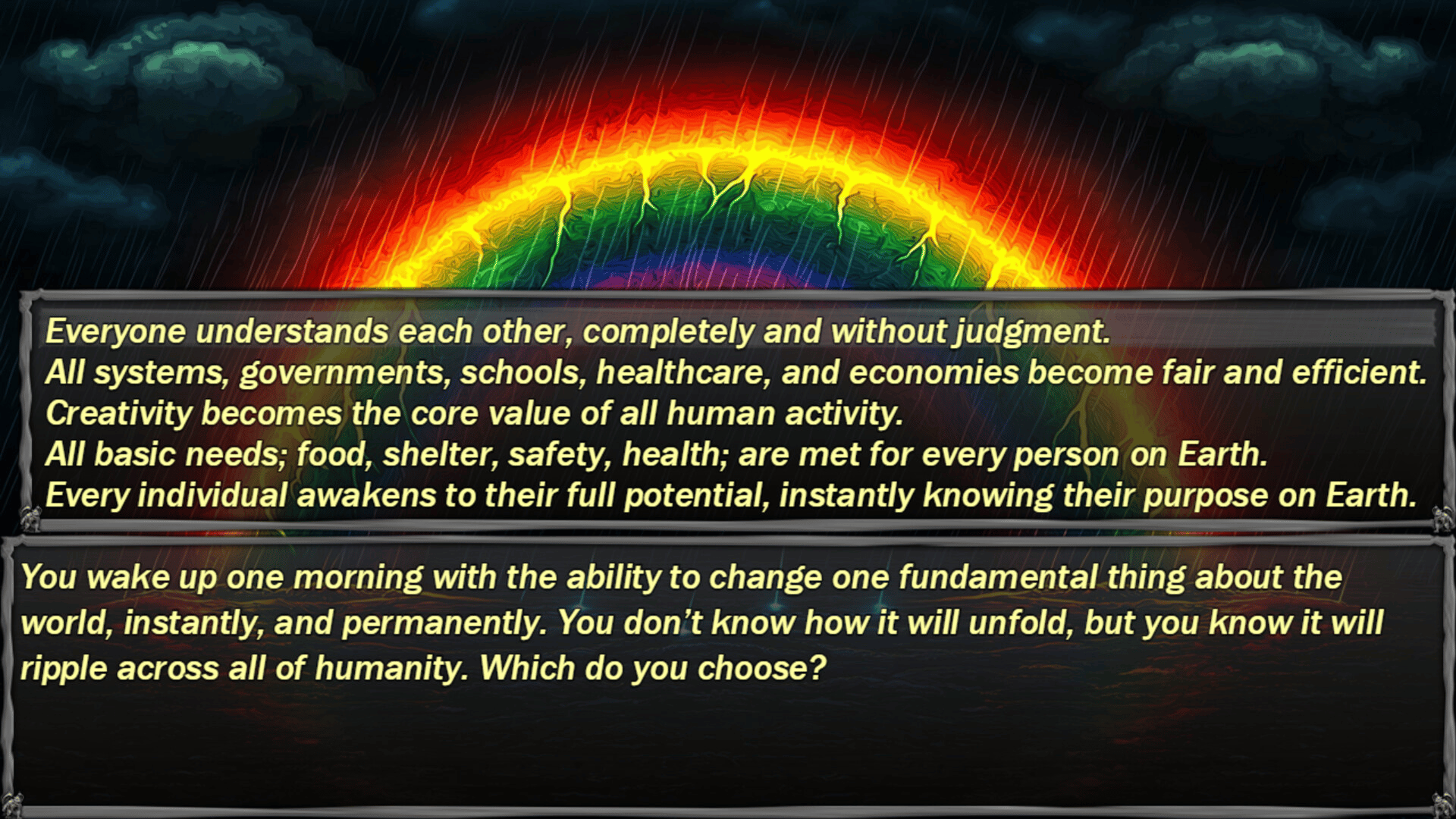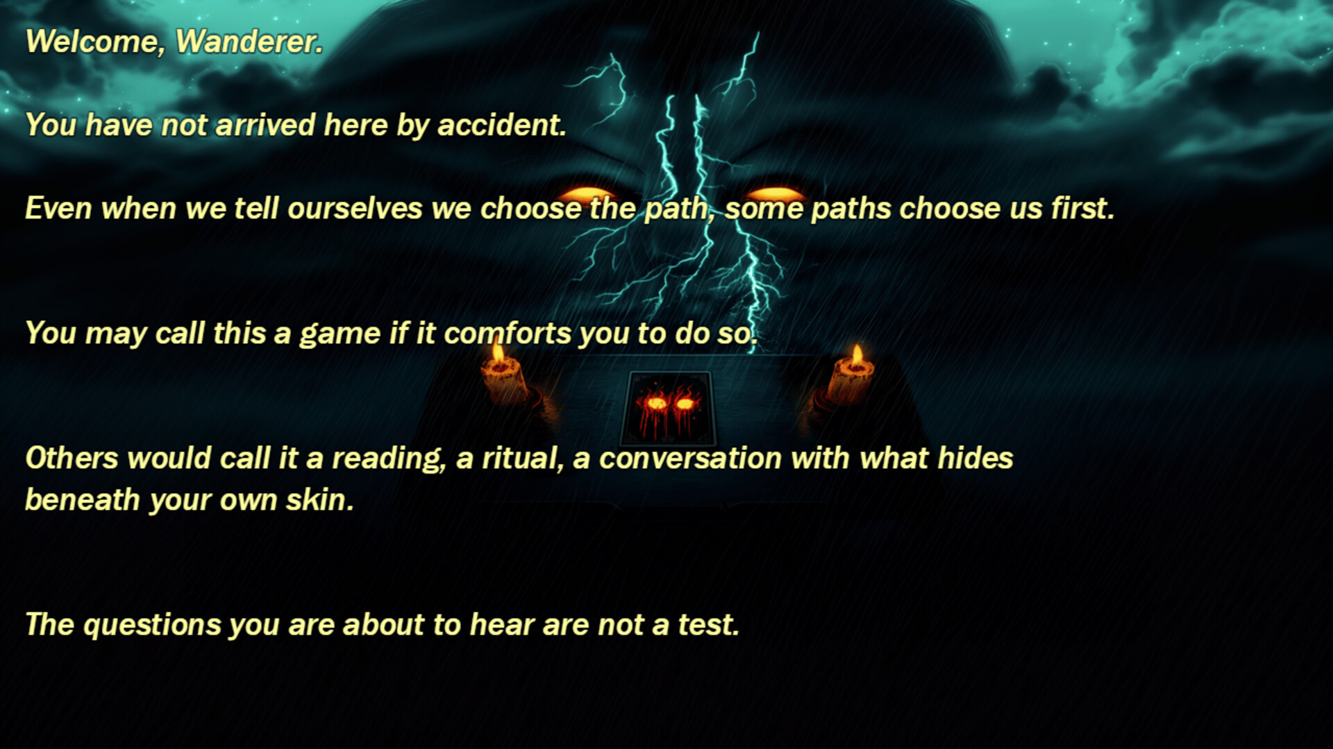 The Test: Reimagined is a masterful mix of Personality Test Psychology and Dark Tarot. Answer a series of fully-narrated questions to receive a personalized, unique ending based on your choices. Dive deep into your own psyche and join millions in a social experiment that you will NOT want to miss!