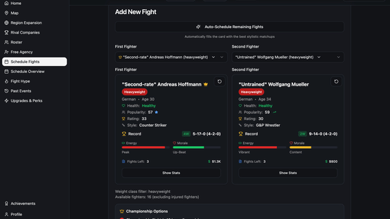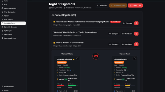 Unique MMA Management-Style Game. Compete against rival promotions, expand your roster, and build your Empire!