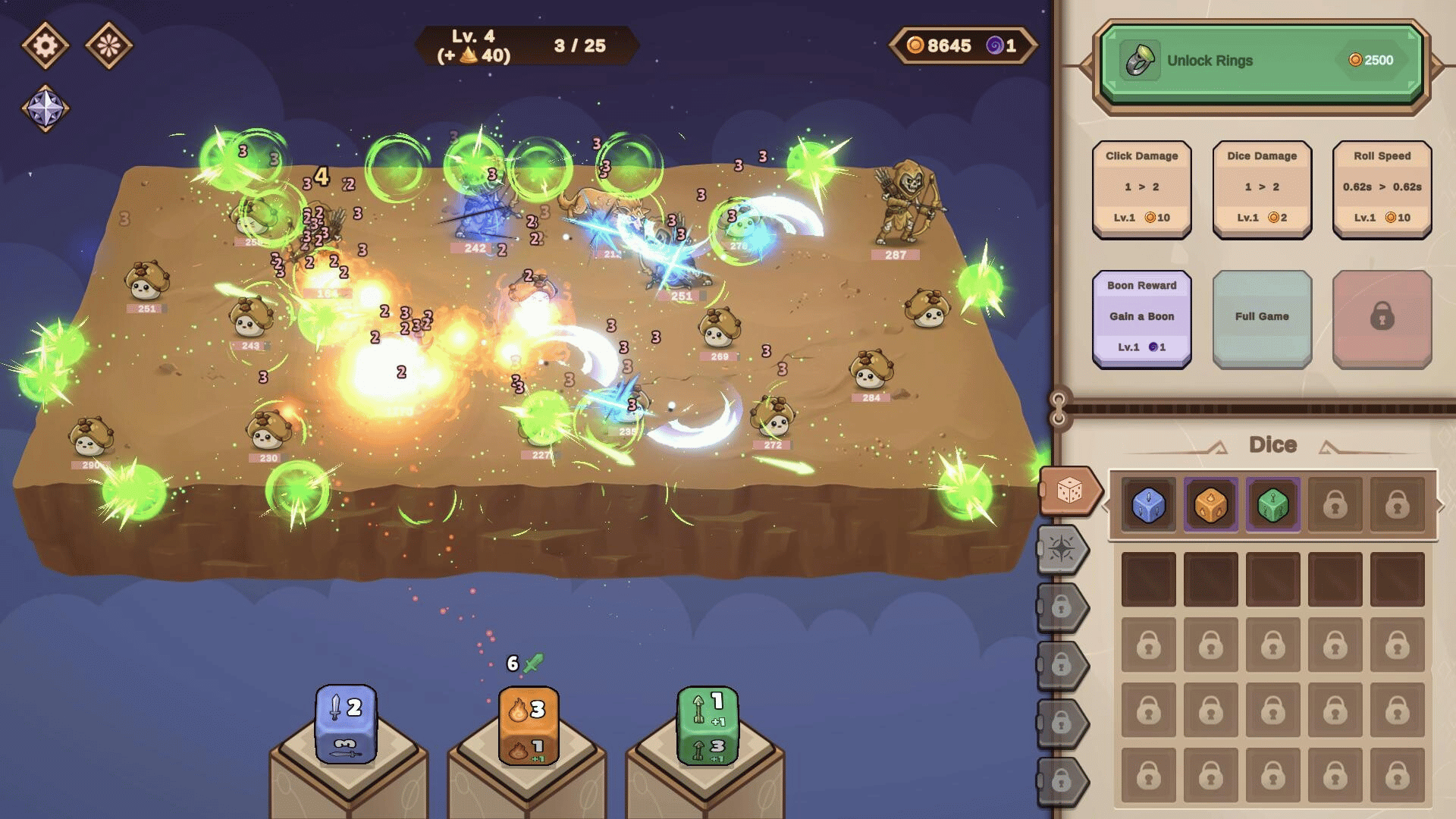 Idle Dice roll automatically for you, unleashing skills and farming rare loot in the corner of your desktop, with tons of content and loot types.