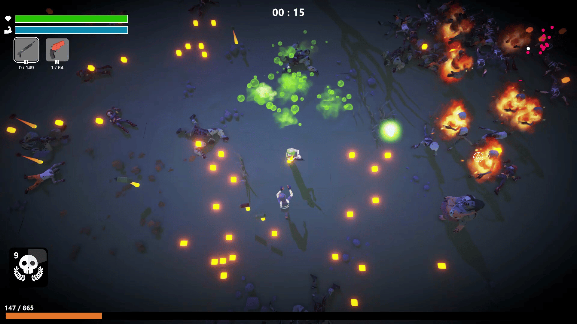 Zombies are approaching fast. You have nothing to trust but the weapon in your hand. Eliminate zombies as quickly as possible. Survive. Gain upgrade points to unlock different abilities. And become stronger. Hold your position until the end of time. Then you can escape from this bloody hell.