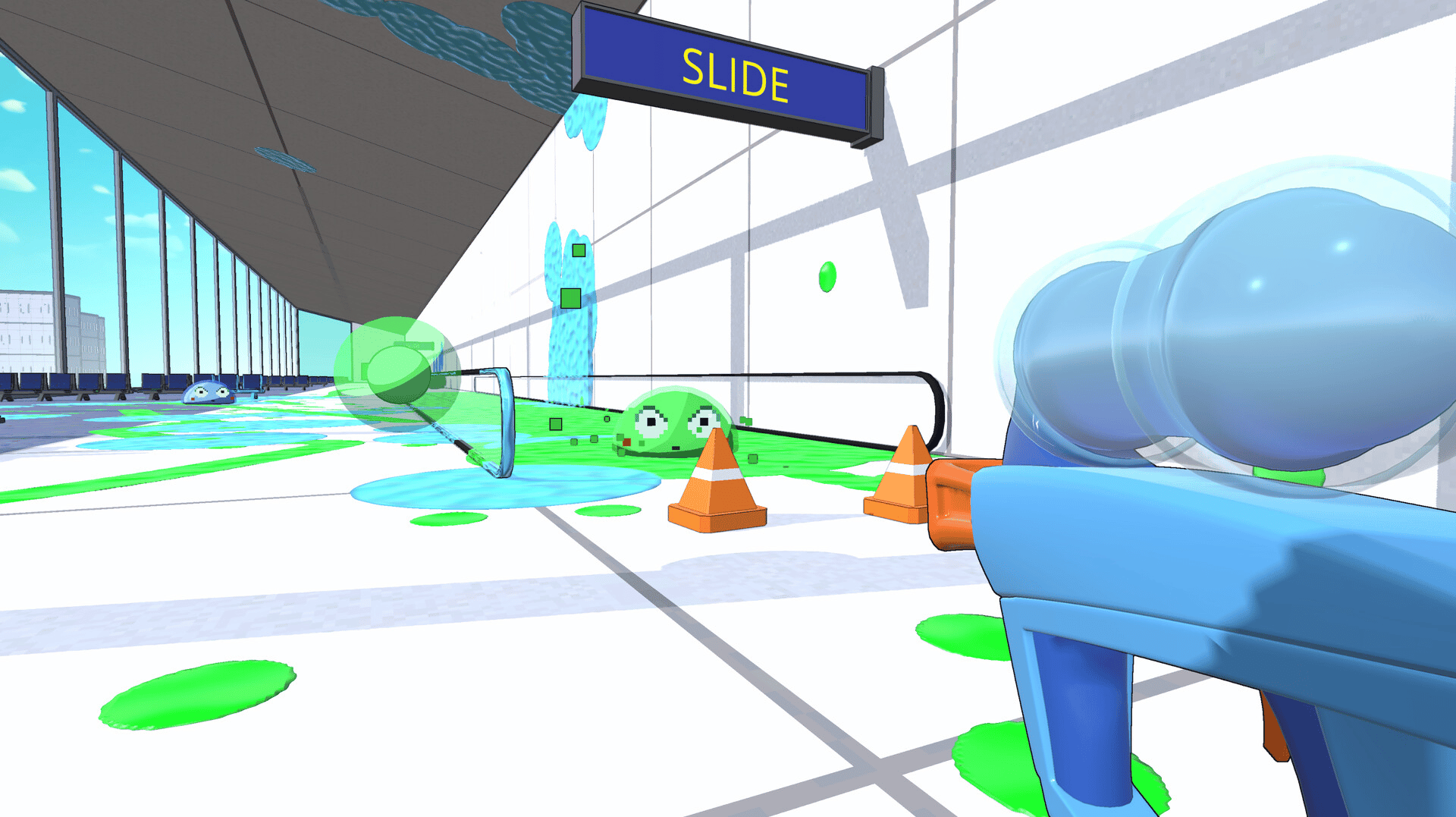 Slime City: Trials is a movement shooter where slime removes friction, and momentum is everything. Splat enemies to paint slippery paths, slide into popping slimes for speed boosts, and race the clock to earn the best medals.
