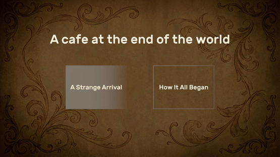 A Café at the End of the World is a kinetic visual novel—a "still motion" story experience told through evocative static imagery and text.