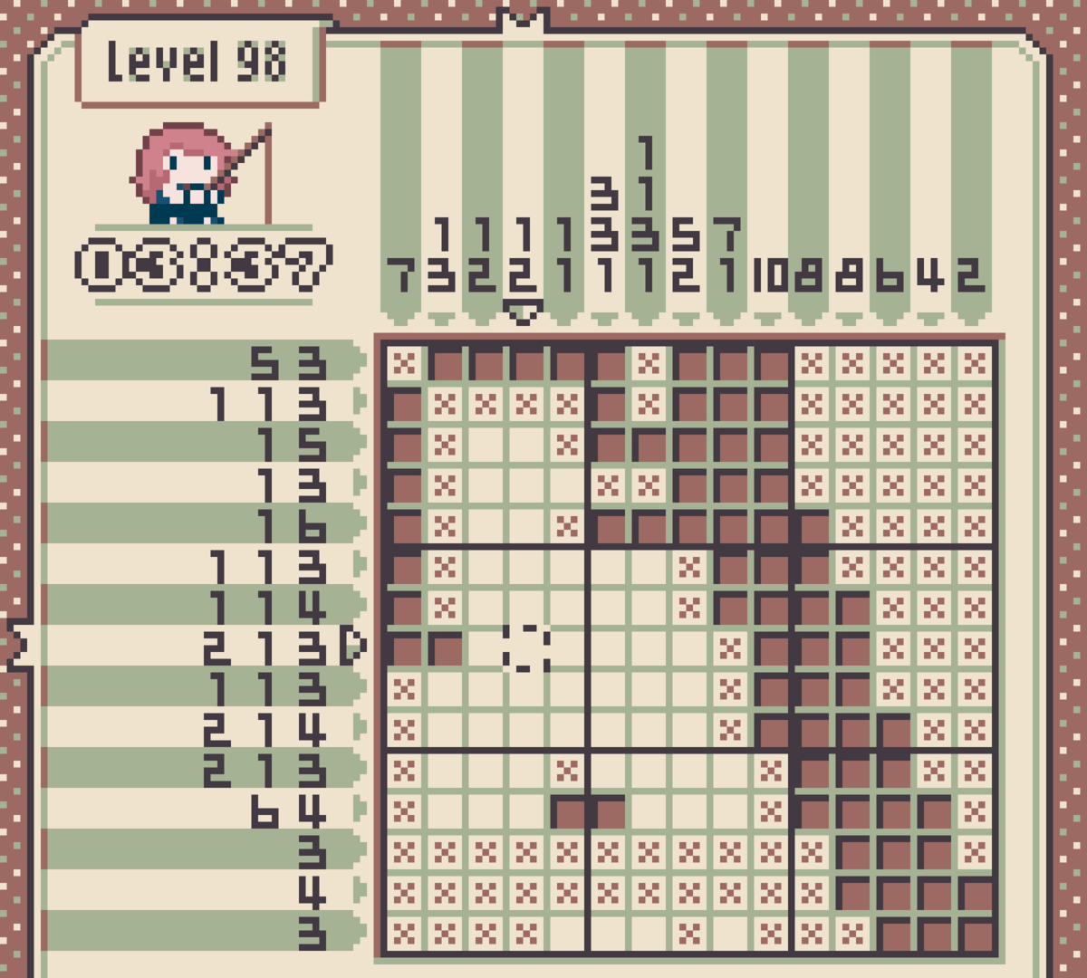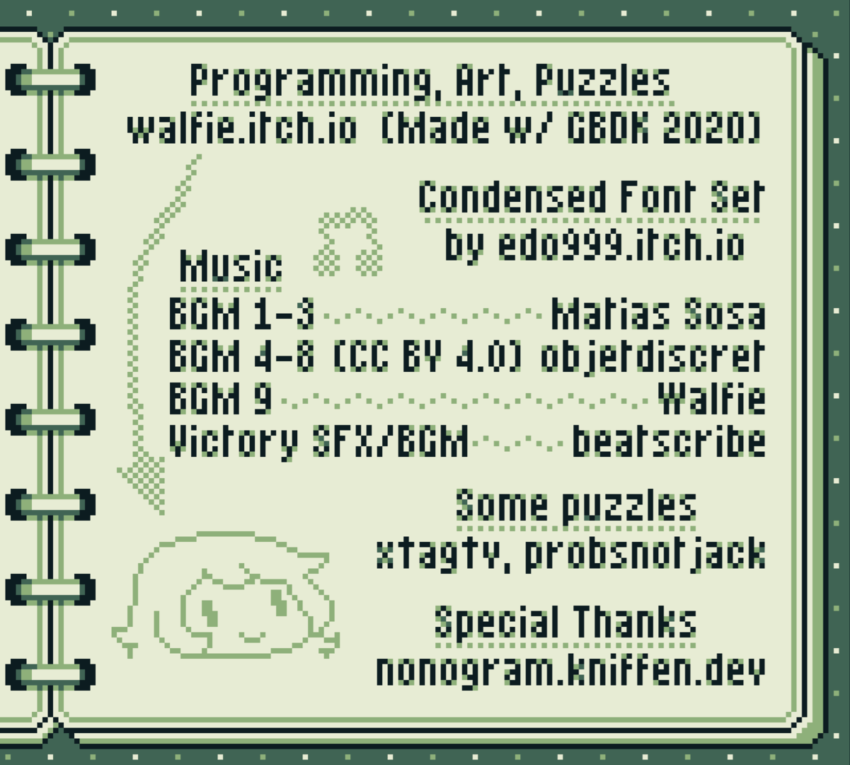 Walfie's Nonograms is a nonogram puzzle game for the Game Boy Color, featuring 150 puzzles