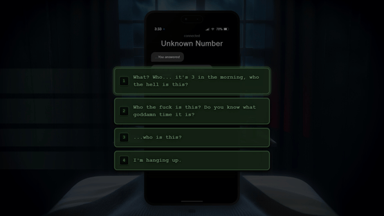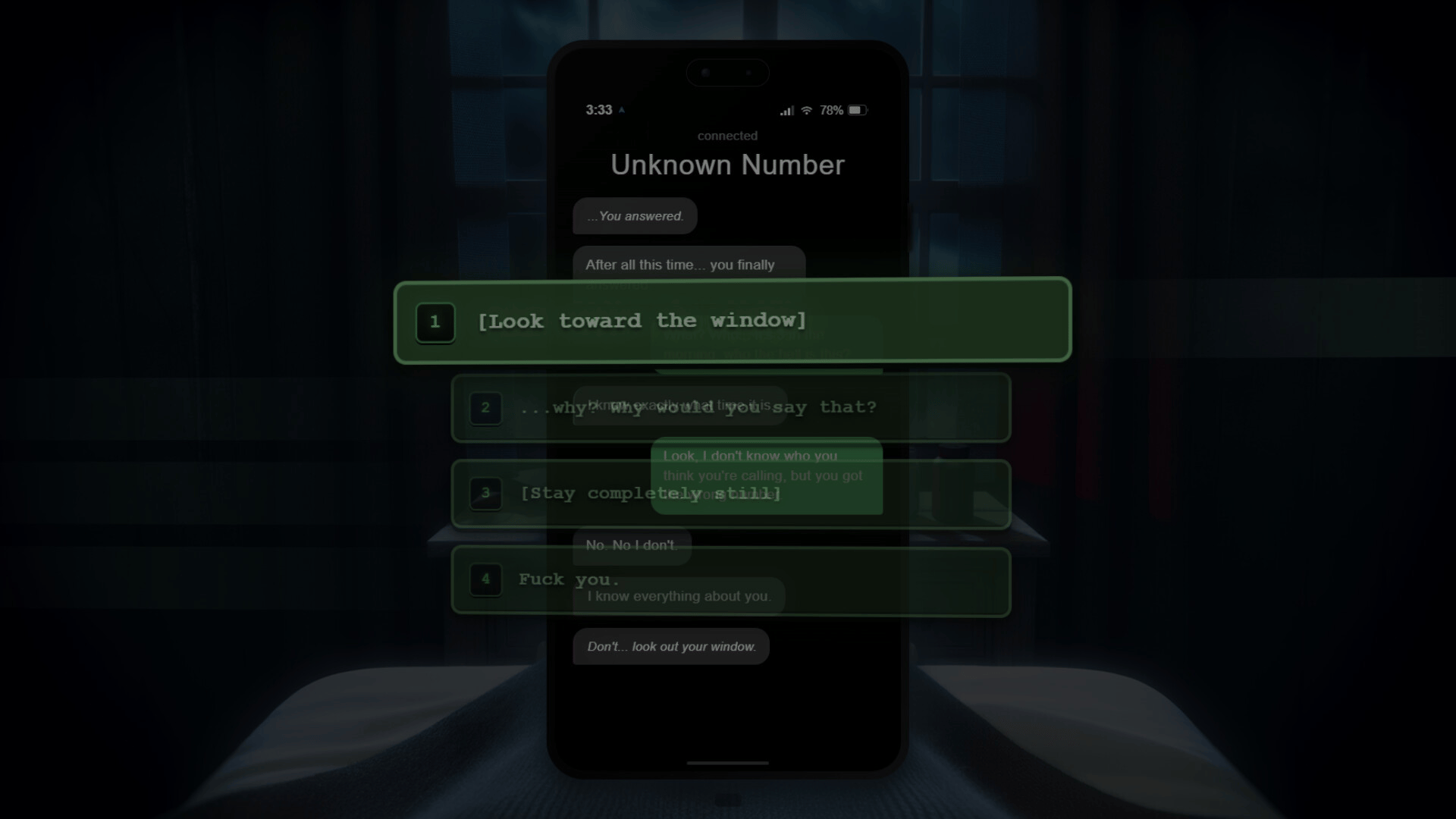 A stranger calls at 3:33 AM. They know your name. Choose your words carefully in this fully voiced psychological horror game.