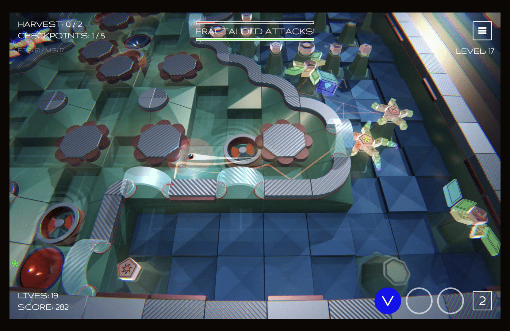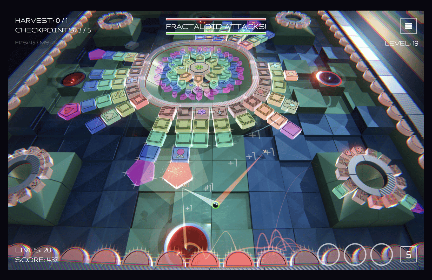 Fractaloid Attacks! is an arcade mix of pinball and brick breaker set inside a living digital world. Bounce, glide and blast through fractal caves, unlock powerful technologies, survive chaotic hazards and build your own collection of strange fractaloid creatures.
