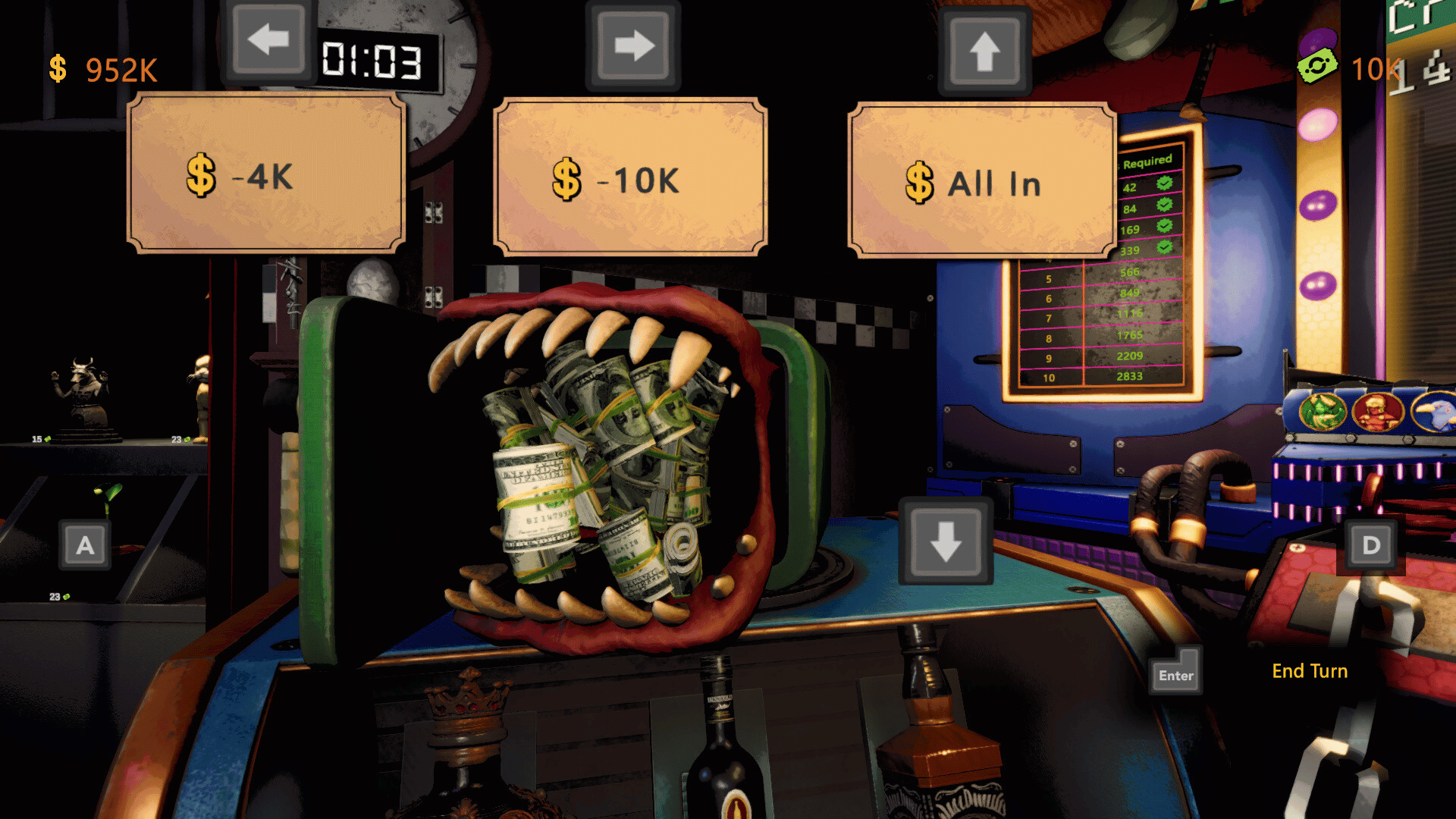 CoinPit is a dark game that blends roguelike strategy with coin pusher thrills. Trapped in a never-closing, dimly lit bar, your escape lies in the coin pusher—stack shiny towers, spin the lucky wheel, and shake the machine until the coins spill out.