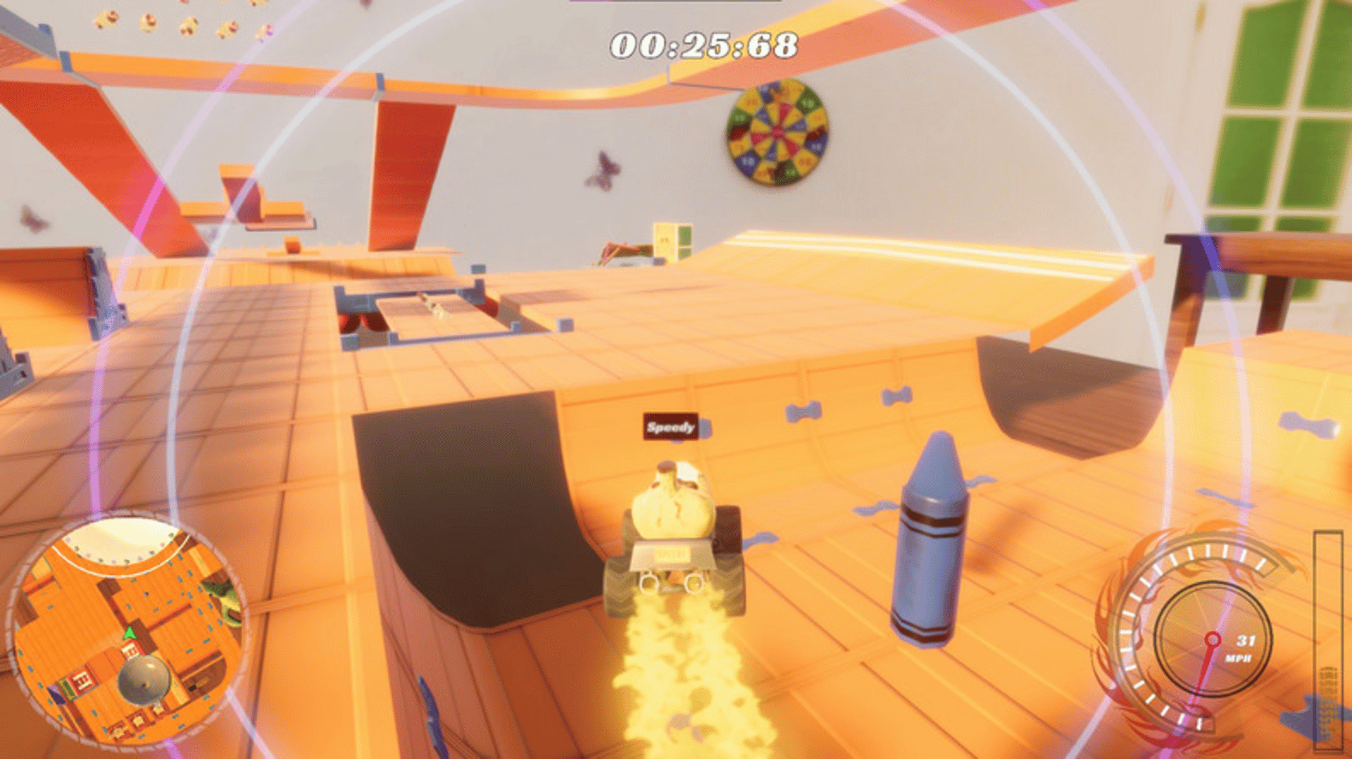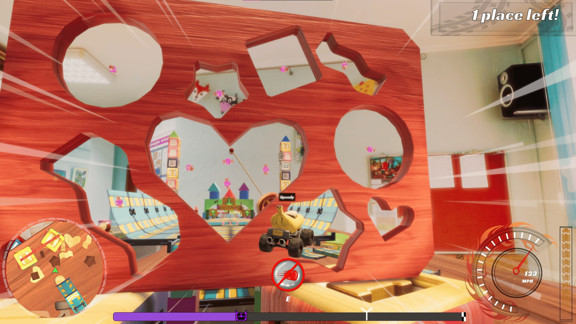 A racing "battle royale" game based around a toy-box aesthetic. Your objective is to race against friends or bots while trying to outrun Goolagar, the Under-The-Bed-Dweller.