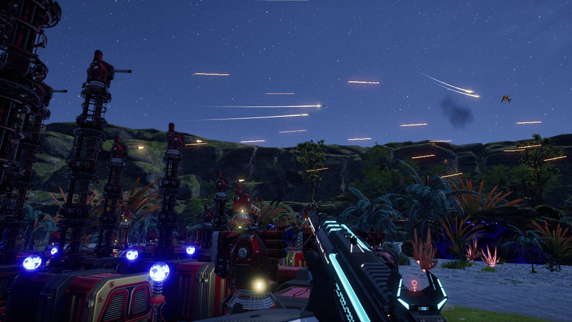 Control a Nanite body from a space station to gather Nanite resources on Earth, seized by a rogue AI. Build and fortify your dropbase with turrets and defenses, fight waves of robotic enemies, and collect Nanites for extraction, balancing fast FPS combat with strategic tower placement.