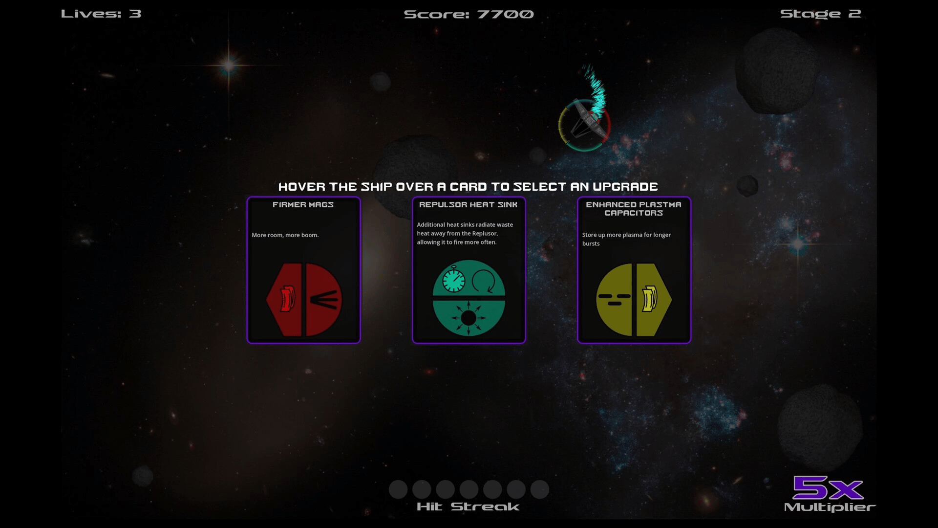 What if Asteroids but roguelike? Destroy space rocks to unlock better weapons, abilities, and equipment so you can ... destroy more space rocks. Choose upgrade paths, select sponsors to match your play style, and compete with friends for the high score in this retro-modern top-down space shooter.