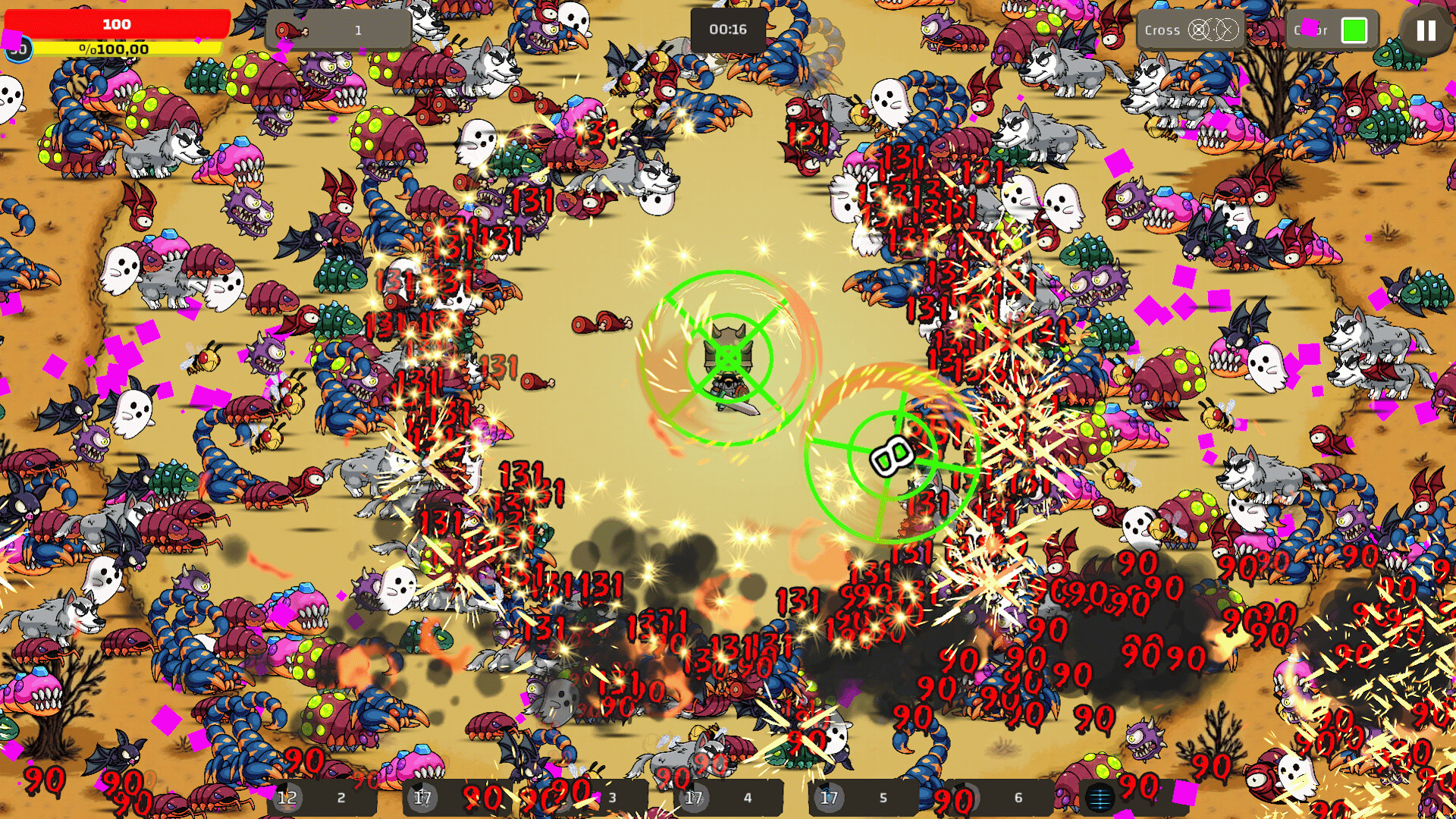 Survive waves of monsters from every direction! Aim with your mouse, defeat enemies, upgrade your weapons, and mine ores to grow stronger. Faster reflexes and smarter upgrades mean longer survival!