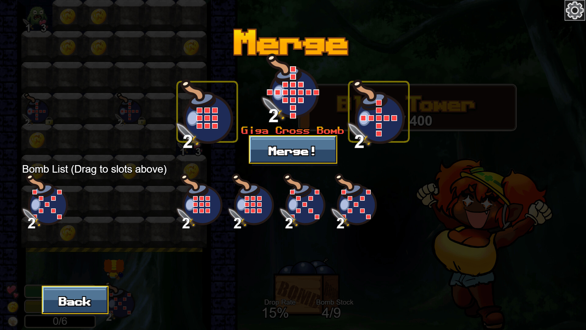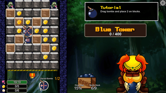 Dungeon Bomber is a chain-reaction roguelite where you place bombs and blow through the dungeon. Drop a bomb each turn, earn coins, and upgrade your deck. Fuse bombs to boost range and effects. Defeat advancing monsters and destroy the required blocks before your HP runs out.