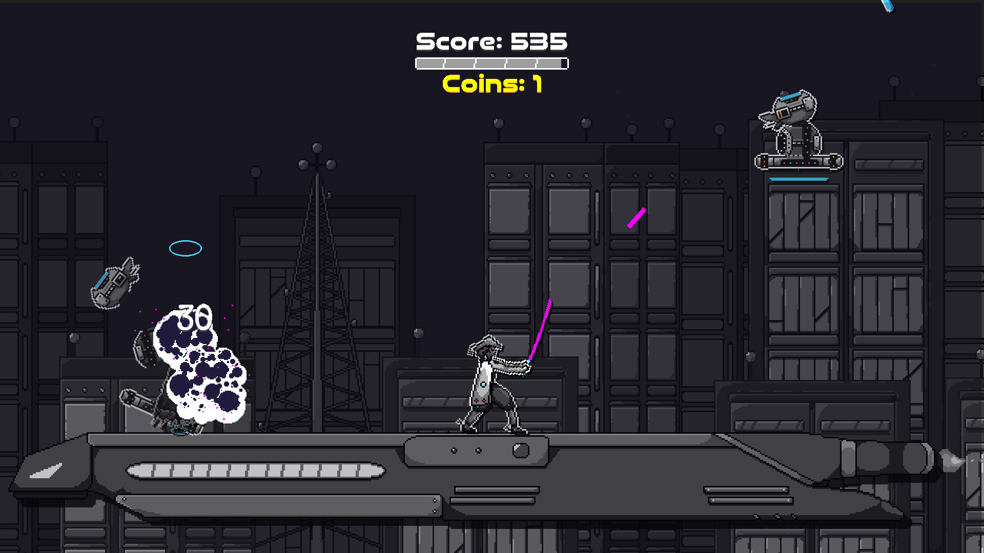 Become HKKMR-U, the legendary Cyborg Samurai, and test your reflexes in a fast-paced arcade hack-and-slash survival game. Stand your ground, unleash your sword skills, and face wave after wave of mechanical enemies inspired by Japanese folklore.