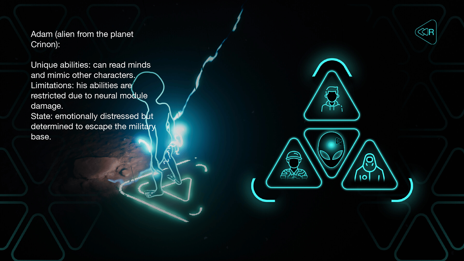 A story-driven sci-fi detective puzzle game where mind reading, shapeshifting, and social roles open different paths through the game. Explore Area 51, use dialogue, avoid enemies, and uncover a conspiracy inside a secret military base.