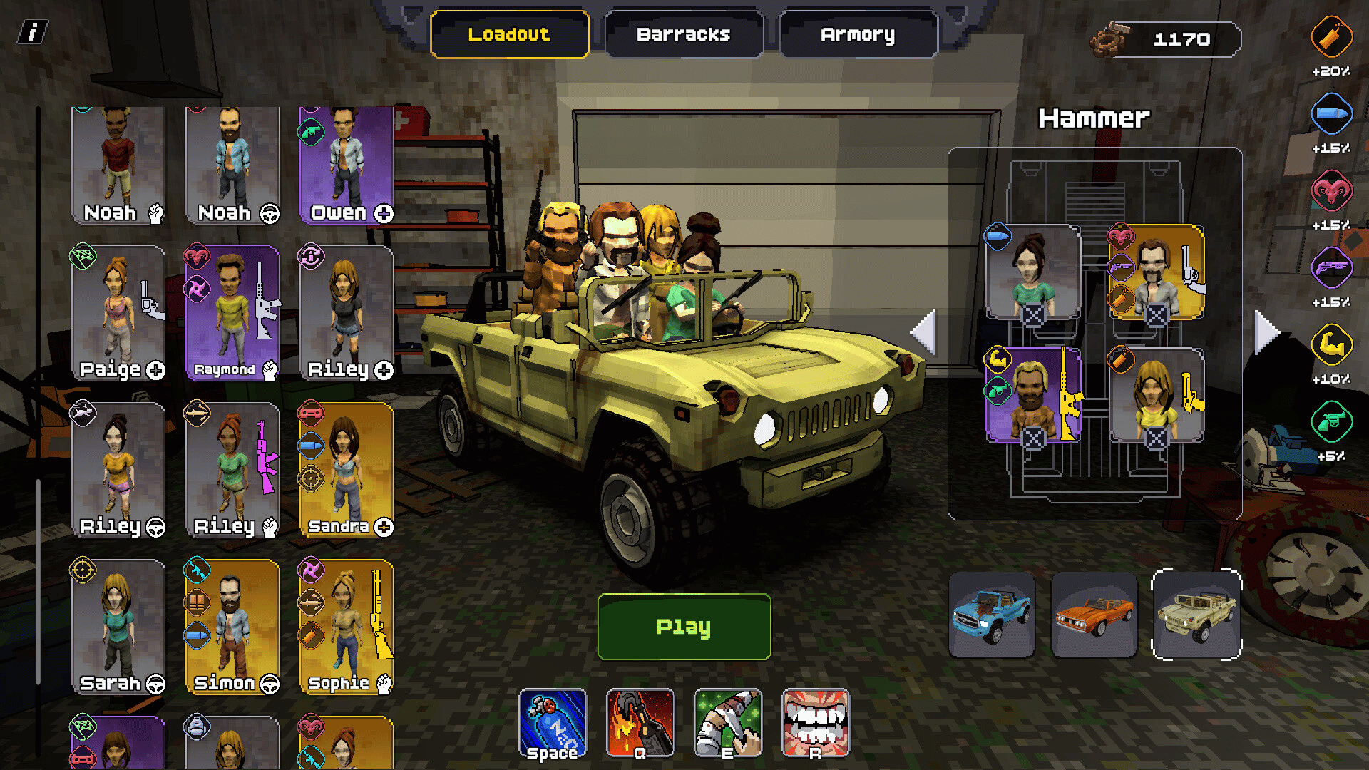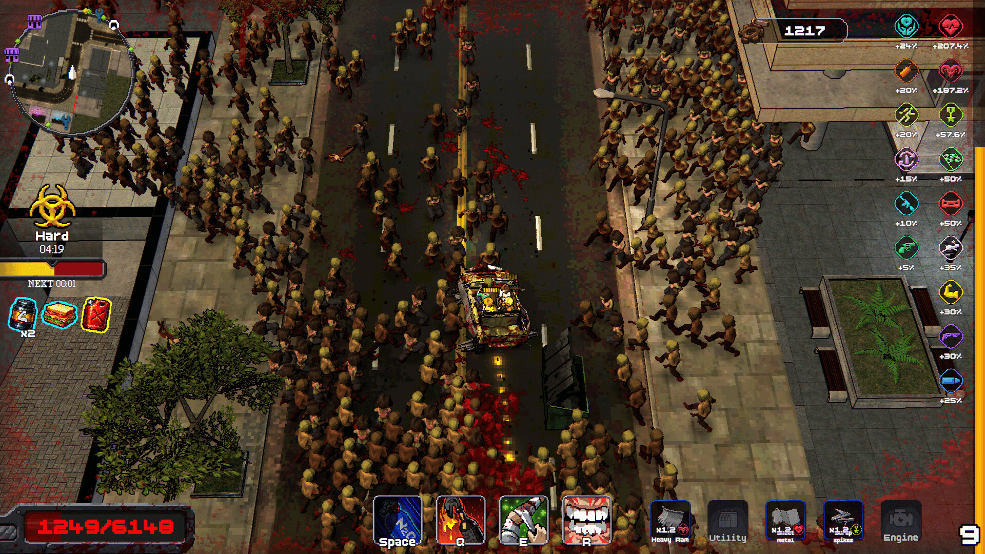 Drive, shoot, and survive huge zombie swarms in a top-down roguelite where you build a squad, upgrade your car, and create wild hero synergies. Procedurally generated characters, weapons and levels.
