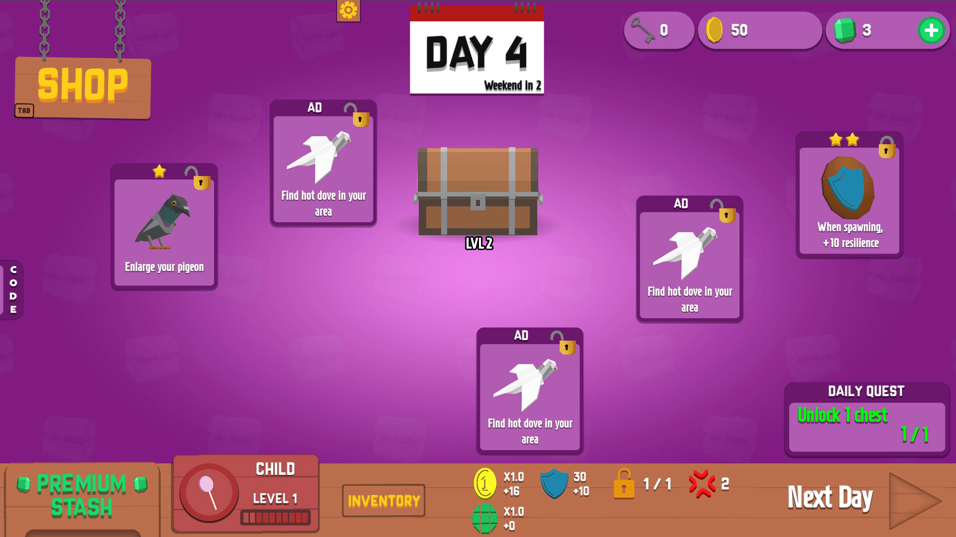 Daily Burden is a chest-opening roguelike parodying mobile games. Experience short runs where you’ll learn to crave ads, build your way out with over 100 items and to keep up with key inflation… but beware of (FAKE) microtransactions !