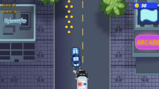 A fast-paced top-down 2D arcade racing game with endless single-player action and competitive 1v1 multiplayer. Collect coins, upgrade 10 unique cars, chase high scores, and outdrive your opponent in quick skill-based races.