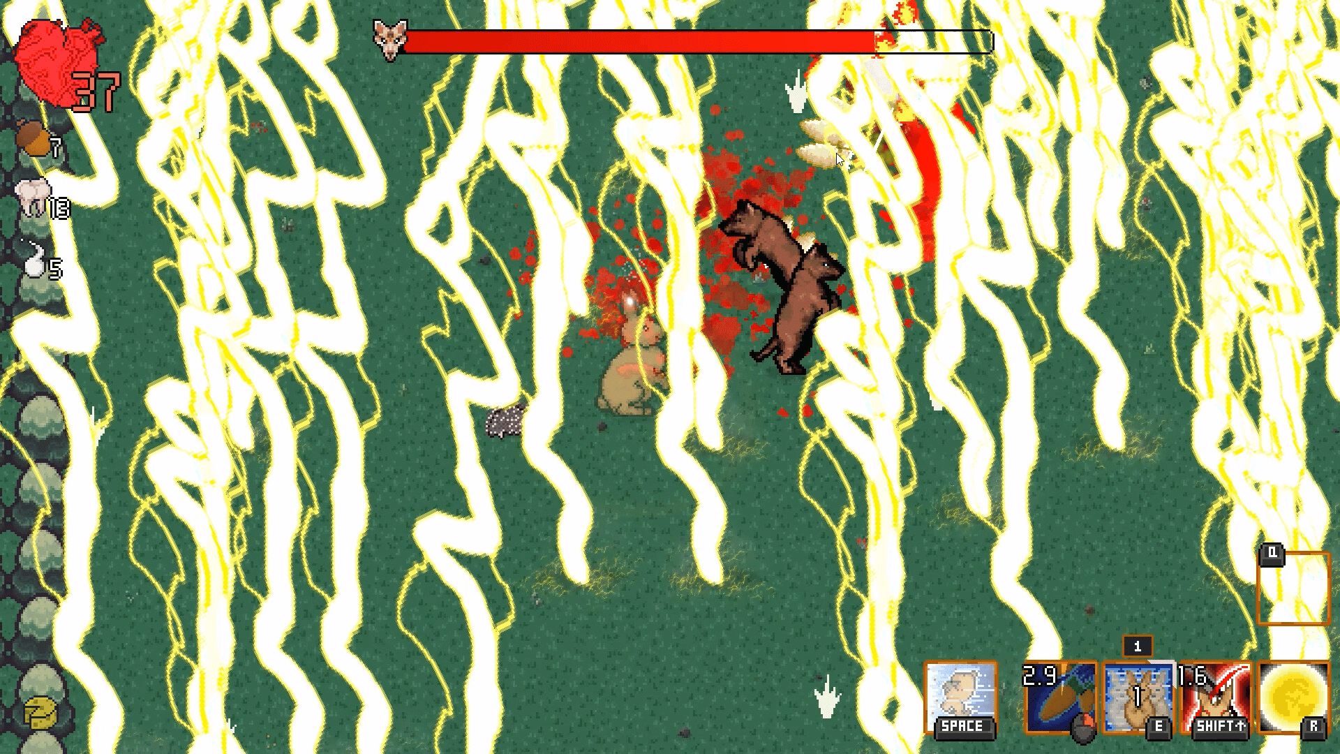 A piglet kidnapped by a vile butcher. Dive into a gory field of vengeance, rescue the piglet, and bring it home!