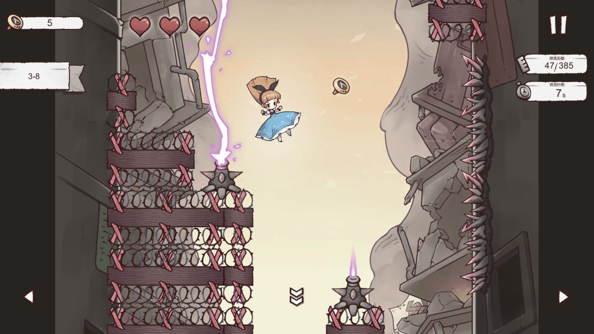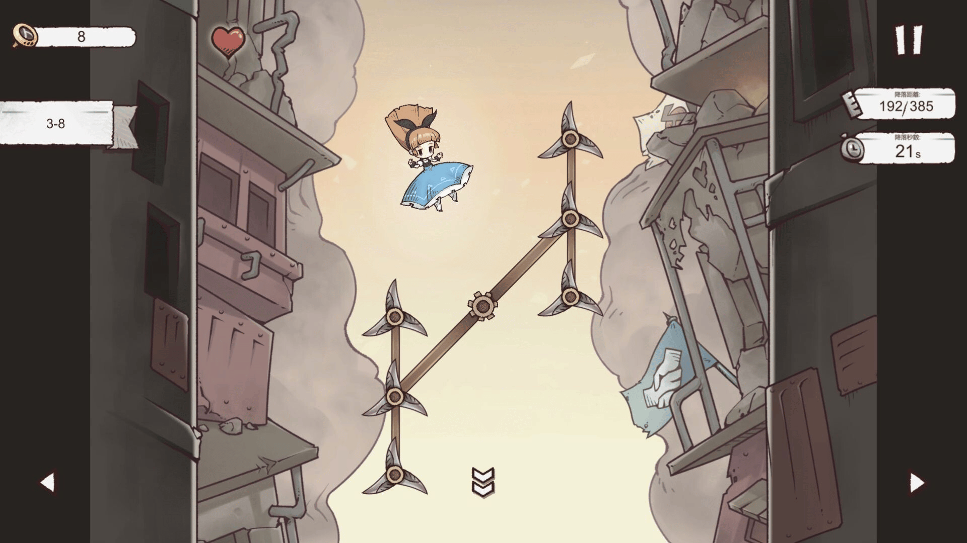 Alice Landing is a vertical scrolling, real-time reaction dodging game. Control Alice as she lands in city ravaged by totalitarianism and war, dodging obstacles, collecting scattered codons, following Alice searches for her brother, unlocks encyclopedia entries, and unravels the final secret.