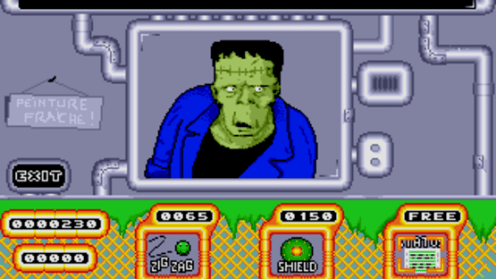 Super Skweek is a game inspired by the wide success of Chip's Challenge, and shares some elements of that puzzler while combining other elements from games such as Pengo. In Super Skweek, you play the title character who must walk around and either paint all the tiles of the game board pink, complete a specific mission, or both. Some tiles react in various ways when you walk on them, like exploding. Unlike Chip's Challenge, the game plays in realtime and you can pick up and use weapons to keep away certain monsters as you paint the tiles. There is also a shop you can enter to purchase items. Finally, levels have a time limit for completion.