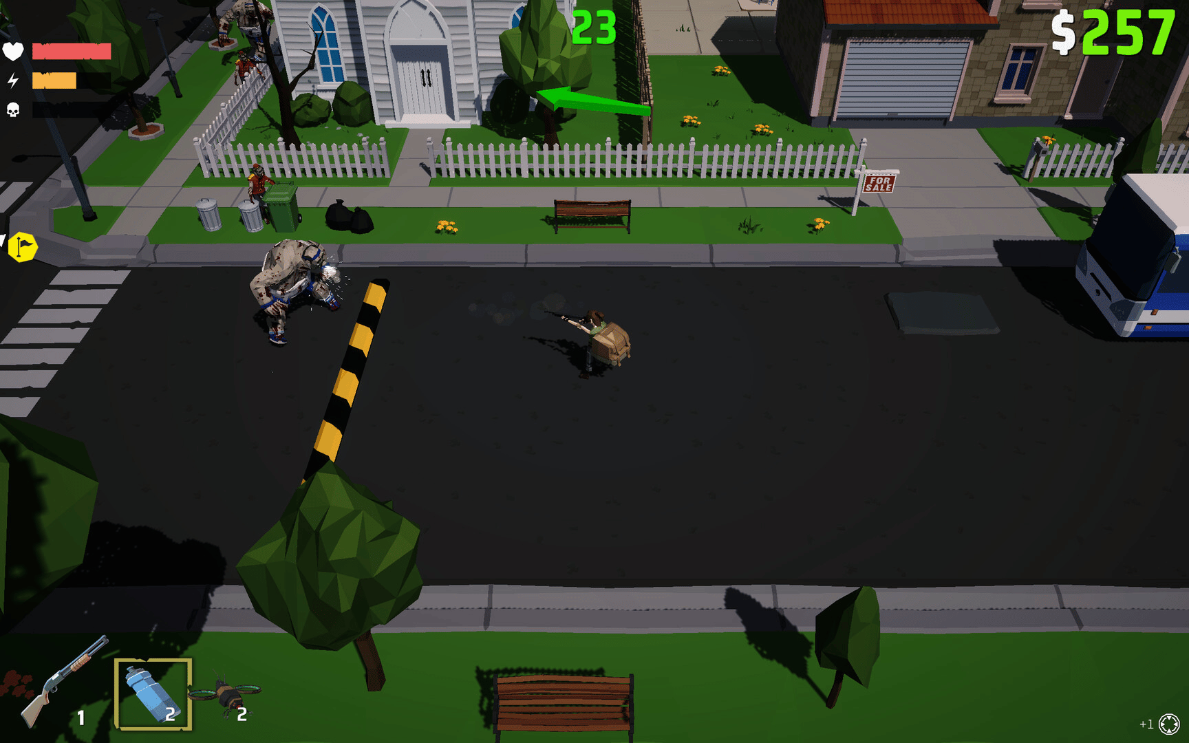 A roguelite top‑down twin‑stick shooter. Rain, shine, or zombie outbreak—nothing stops a Courier on a deadline. Shoot, loot, and scoot through hordes of undead with ridiculous item synergies. Earn cash, unlock weapons, and grow from broke gig worker to a walking apocalypse.