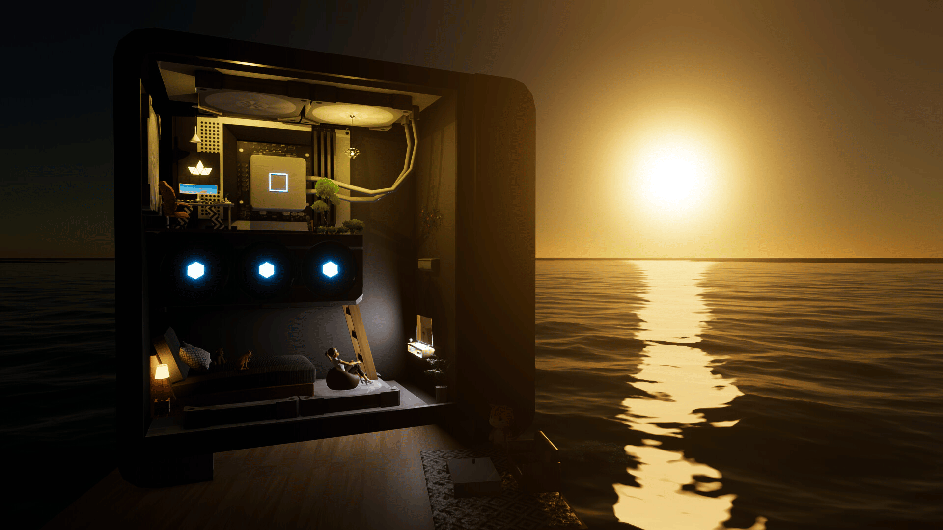 In Oceanside Whispers, the ocean is your canvas. Build and decorate spaces above or beneath the waves. Arrange rooms, add light, furniture, and cozy details to create calm retreats.