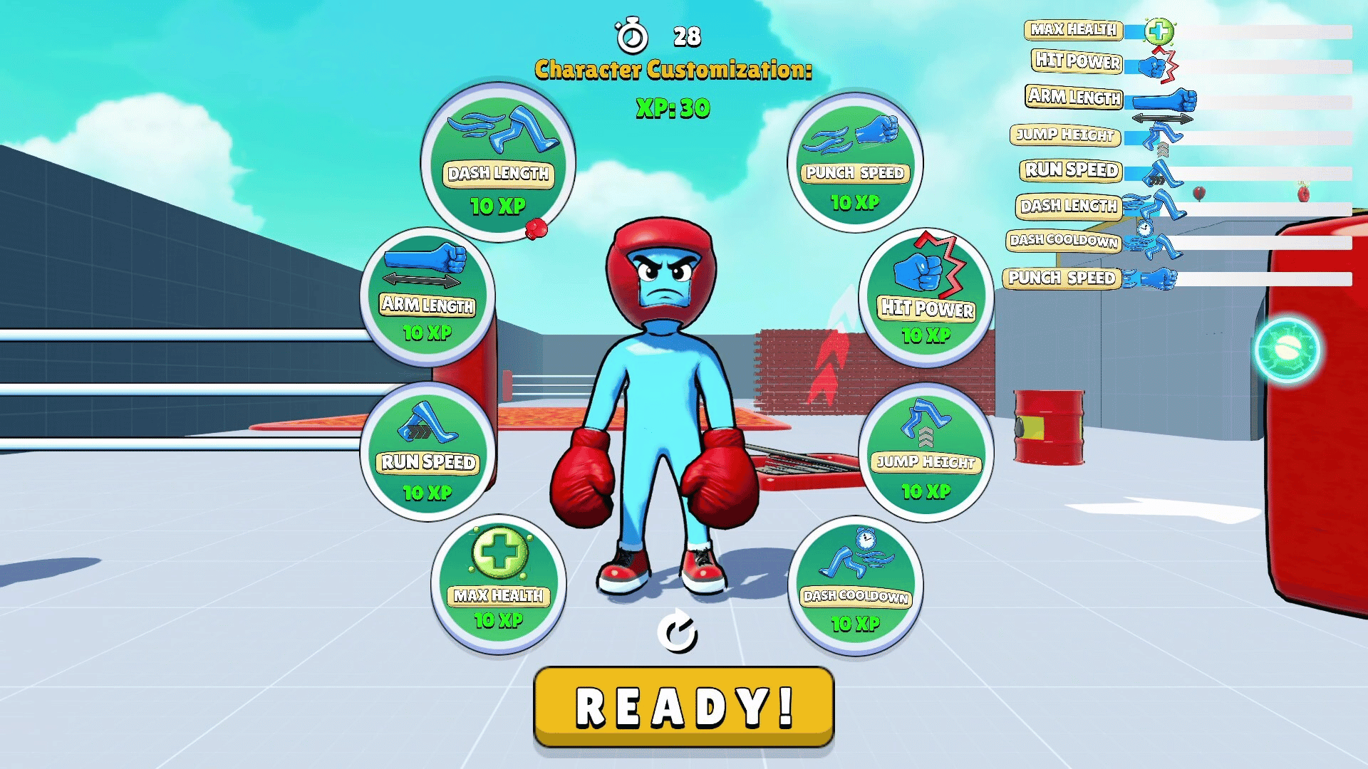 A physics-based arena brawler where elastic punches become projectiles, blending shooter-style spacing with chaotic melee combat.