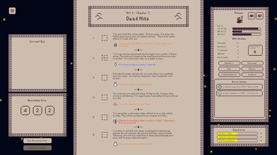Dice Odyssey is a text-based RPG about rolling dice and mastering probabilities to defeat a cult and their minions. Can you overcome the odds?