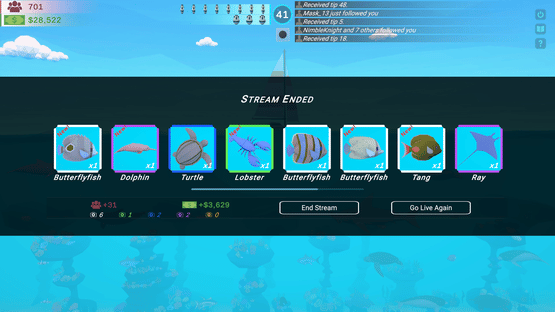 Idle Sailor is a relaxing idle adventure where you sail between world destinations, livestream your journey, capture underwater photos of unique fish, and unlock upgrades to make each voyage faster and more rewarding.