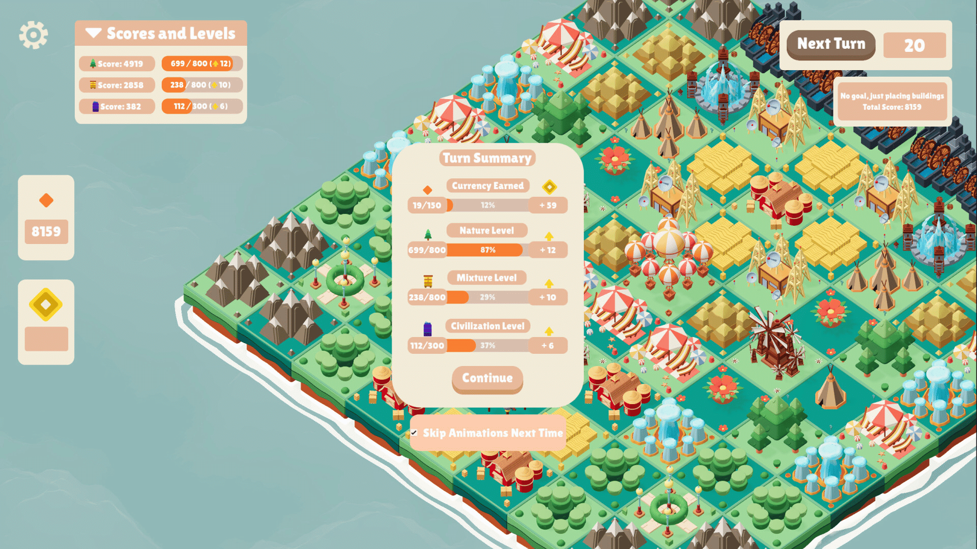 A minimalistic city builder where you can rack up tons of points for your island by strategically placing buildings on blocks around each other.