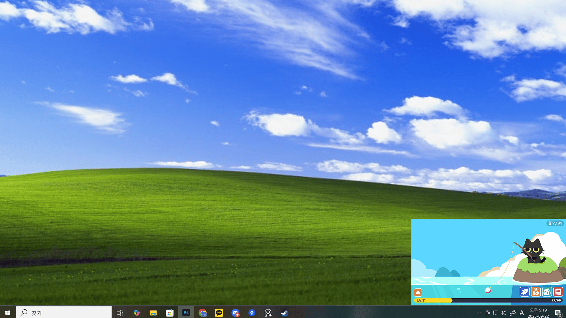 Here’s a cute, chubby black cat. All it wants to do is quietly go fishing. “Right in the corner of your desktop!” Collect fish to fill up the cat’s encyclopedia, earn money, and dress it up in adorable outfits!