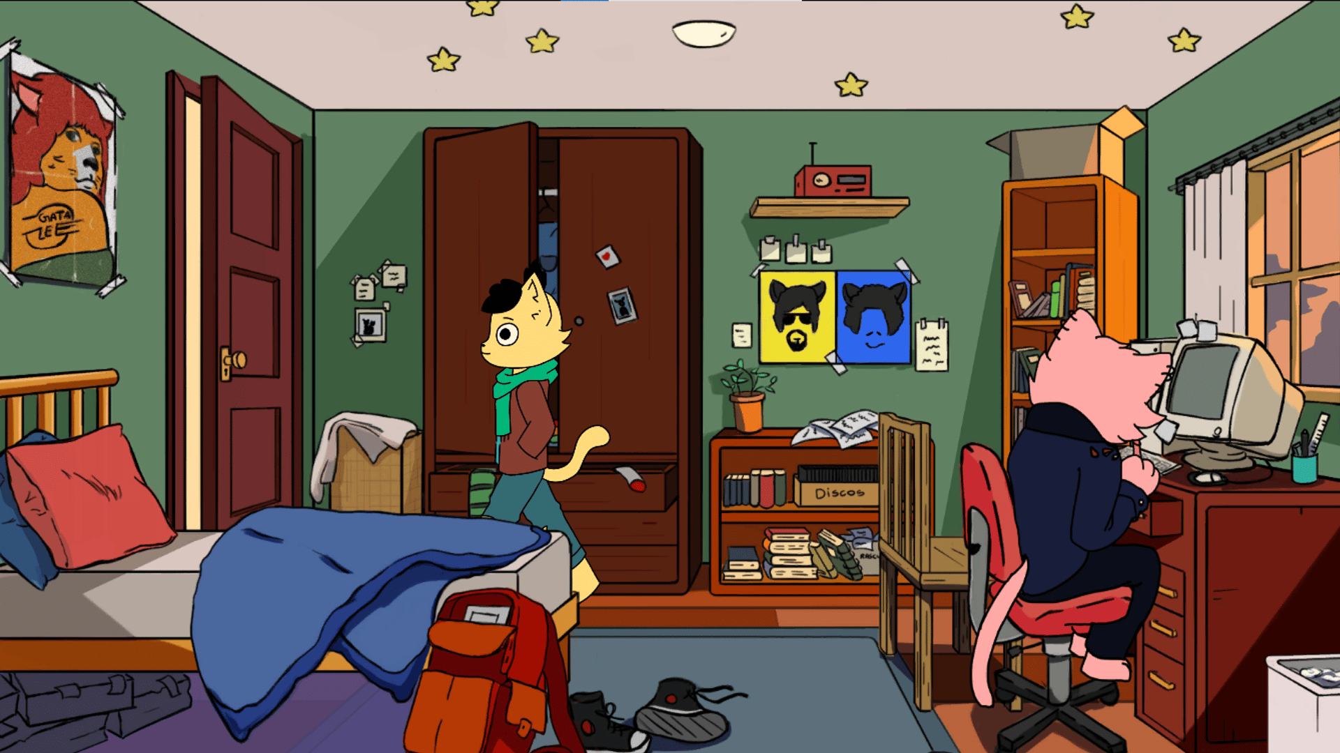 Cat City: A Story About Dreams is a modern Point N’ Click with Visual Novel elements. The game tells the story of Throy, a dreamless yellow cat who you’ll follow on a self-discovery journey as he tries to find a dream for himself!