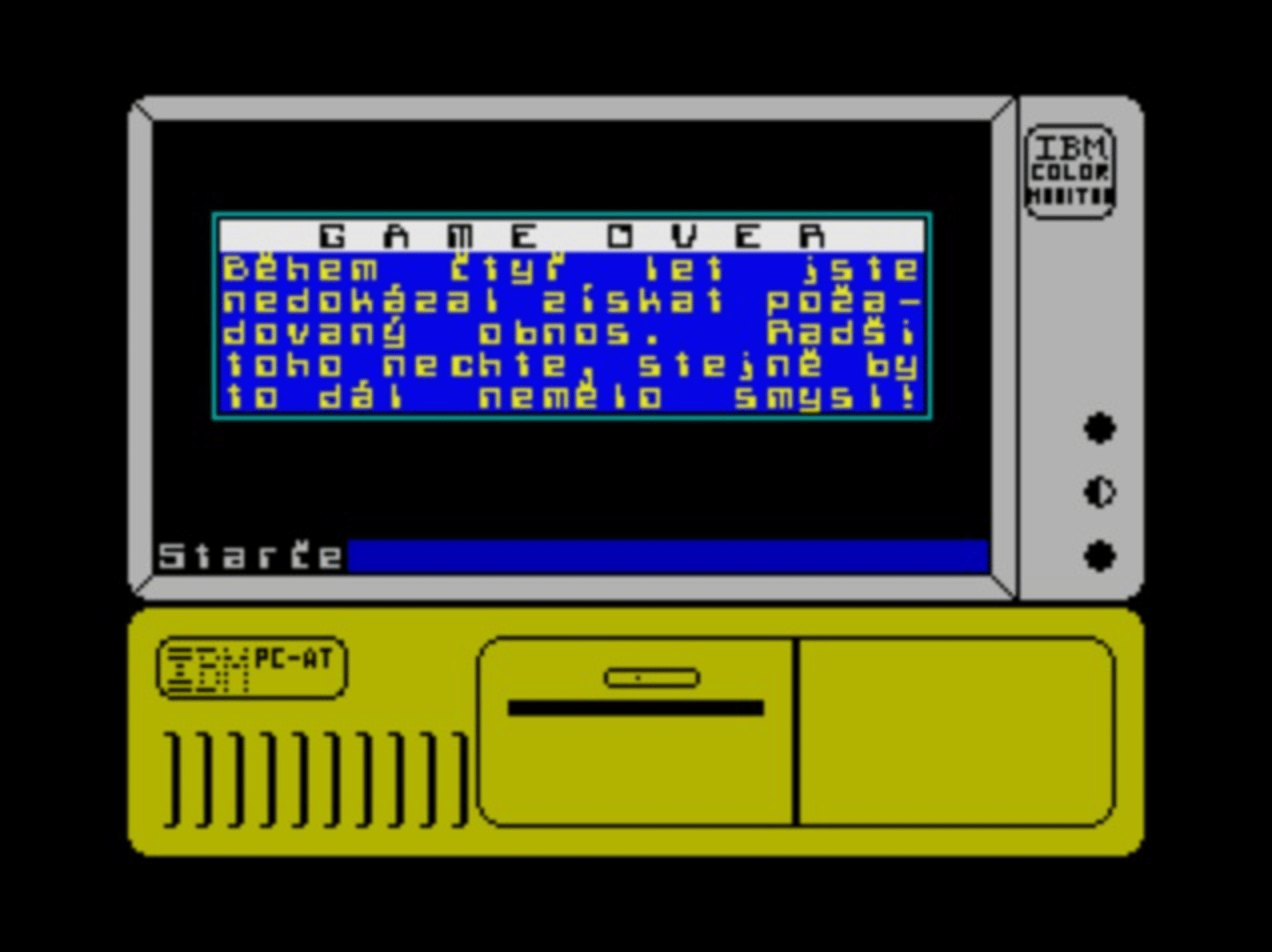 Management simulator, where player begins with 20 000 dollars and has 48 months (turns) to get to 1 000 000.