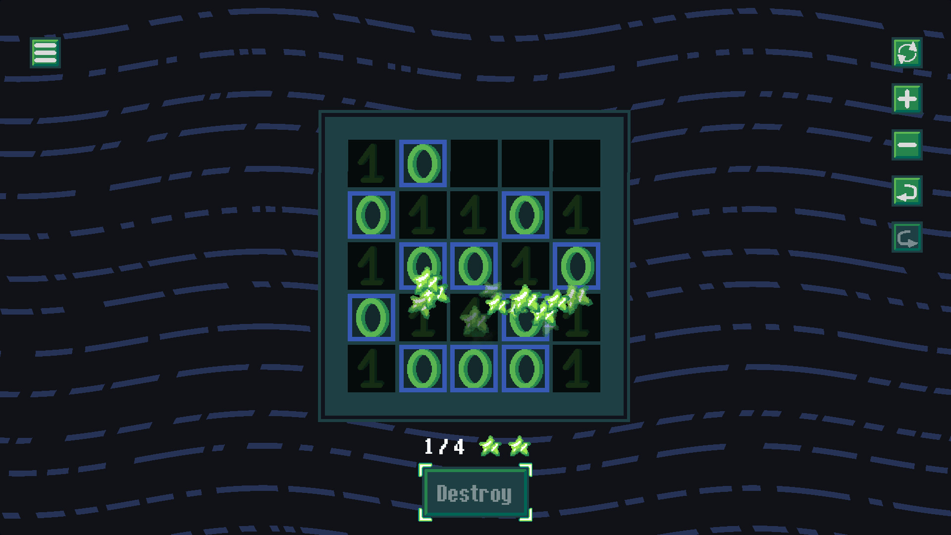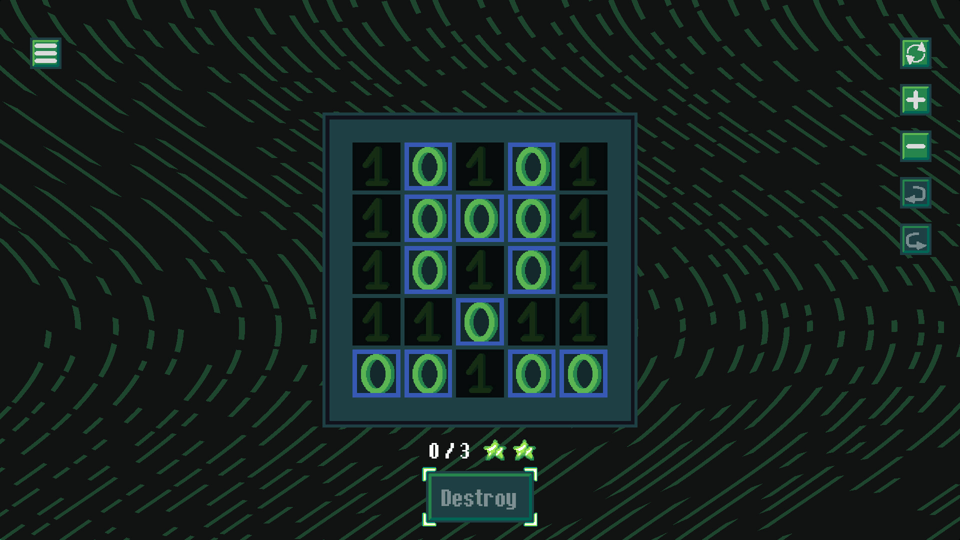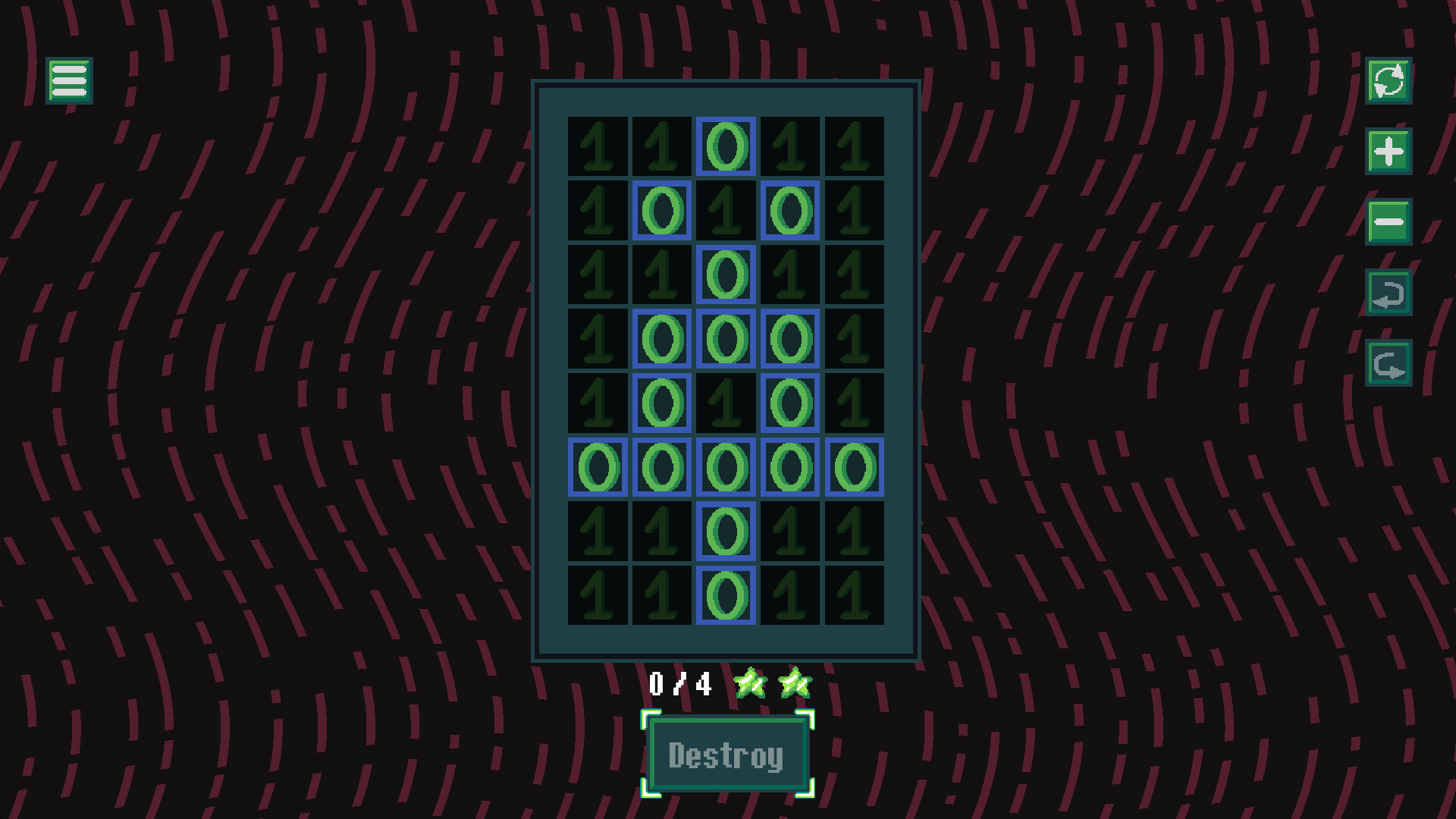 Logic puzzle game where you must destroy paths of 0-s from the board. Use logic to complete levels with optimal solutions.