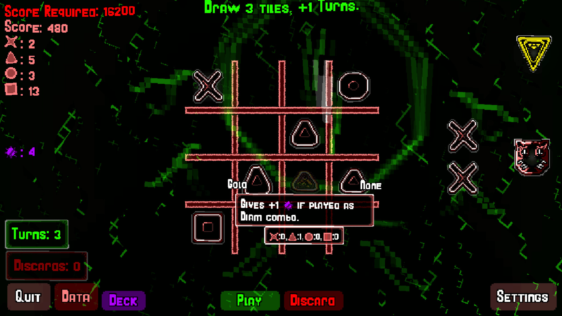 Nodosis is a tic-tac-toe-inspired rogue-like deckbuilder where you play an endless game of high-scores, tile synergies and mysteriously accursed rings. Score, Retrigger, Multiply, Modify, Win and Lose. It's up to you how you want to play this game, Nodosis. Willing to take the chance?