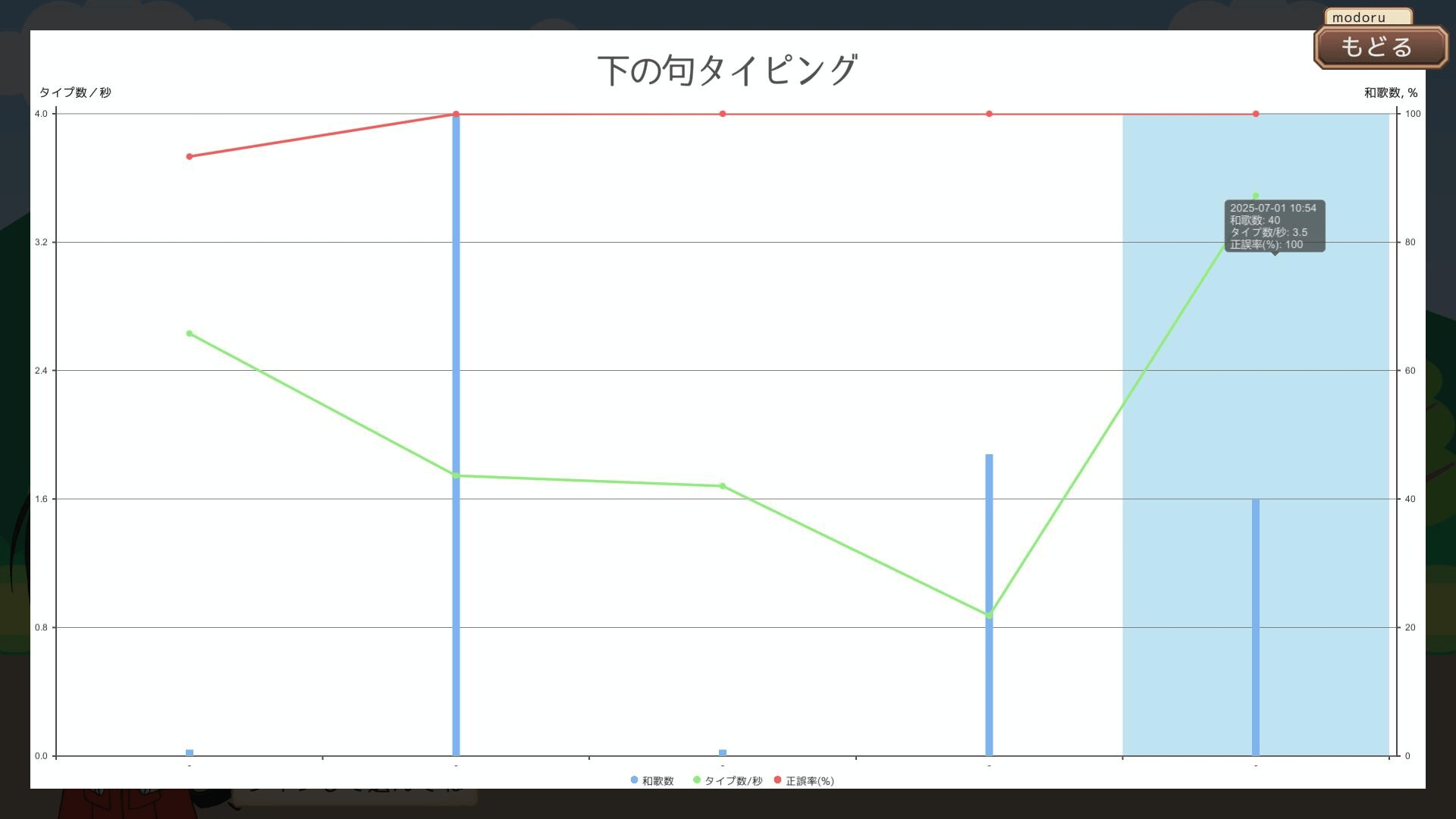HyakuTyping is a typing software with a Roman alphabet input only theme based on the Hyakunin Isshu poems. You can play by looking at the display from the top and typing the lower verse, or by looking at the card with the lower verse and typing the first two characters of the upper verse.