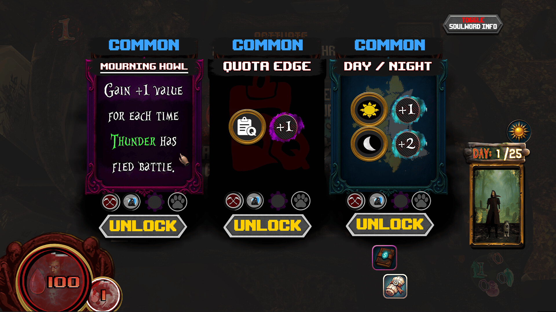 Build modular battle cards with Soulwords consumed from enemies you disembody, ripping their souls free. Play as Adam, the Grim Reaper’s son as you bend time to find new cards & synergies. Travel/fight alongside your dog and meet Grim’s daily soul quota to bring your girlfriend back from the dead.