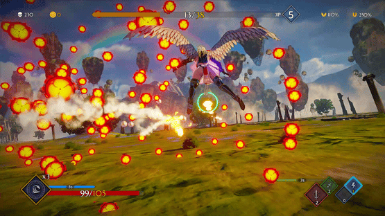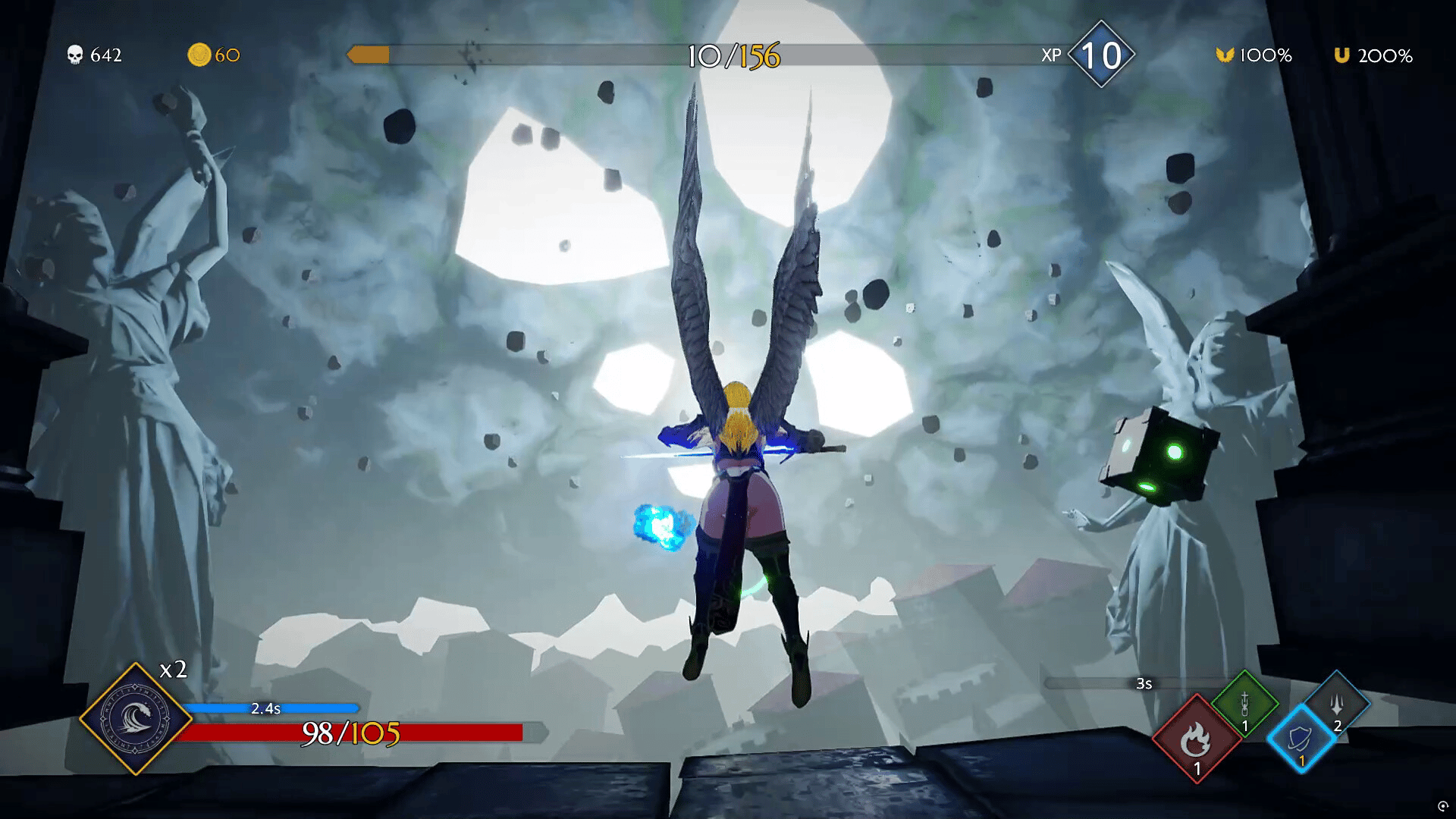 Knitewings is an anime-inspired, fast-paced rail shooter with roguelite progression. Lead one of four angelic sisters, upgrade on the fly, and unleash firepower, melee lunges, and elemental Specials against demonic hordes in a striking arcade adventure.