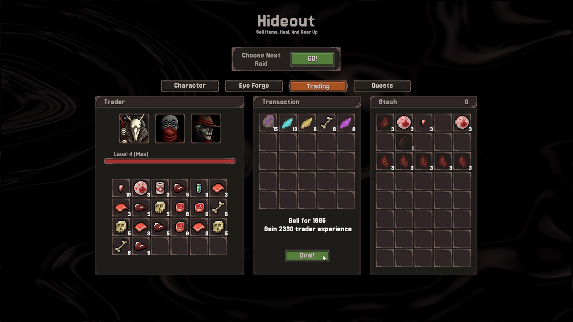 Combine powerups to forge demonic eyes and create deadly builds. Drop into raids, gather materials, and fight your way through demons. Escape alive to keep what you’ve earned or die and lose everything.