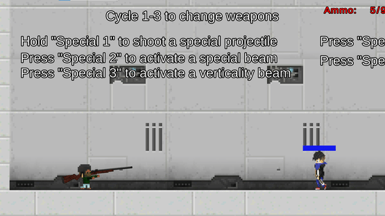"Mikaira (Archived)" is a 2D, shoot 'em up, side scroller. You can shoot through enemies with guns, bust through them with superpowers, or dodge your way through their attacks.