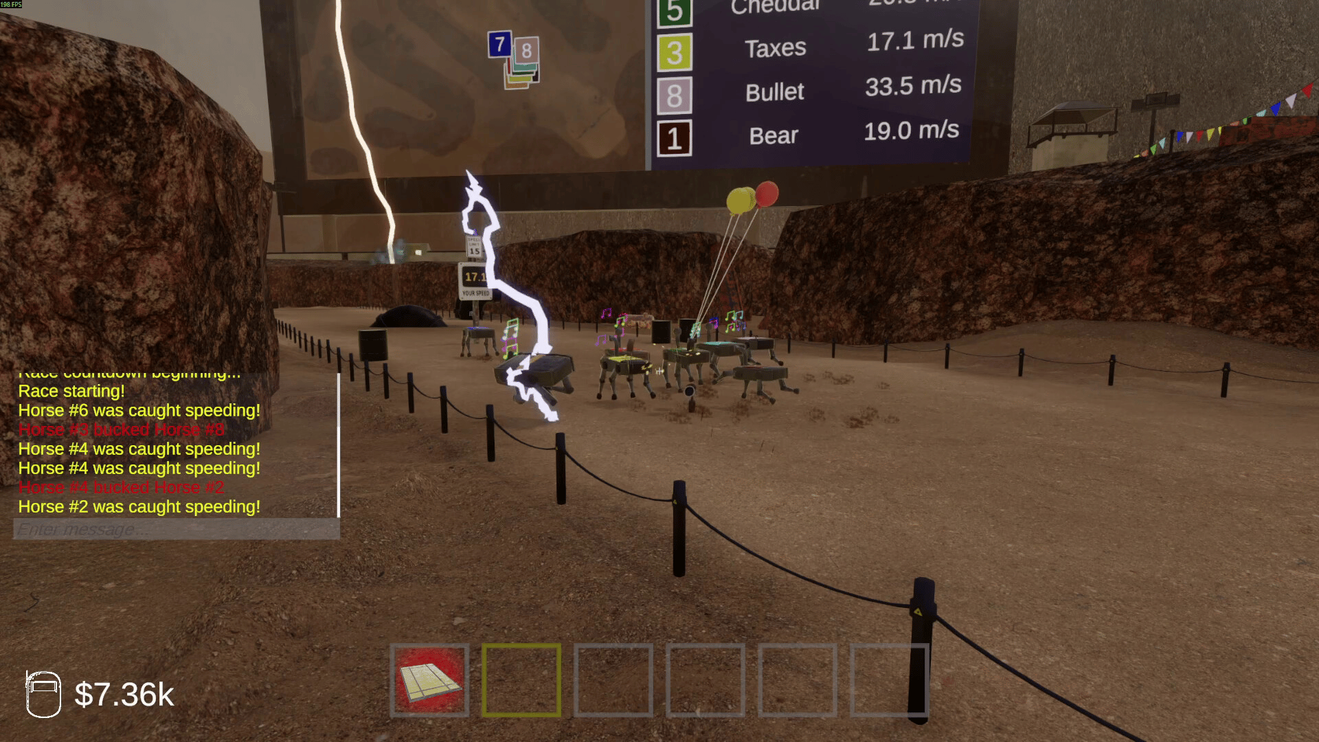 1-4 players gamble on robot horse races at this casino without rules. Sabotage the horses, manipulate bets, or even blow up the track. Outplay your friends, or at the very least make sure they lose too. All that matters is the payout.