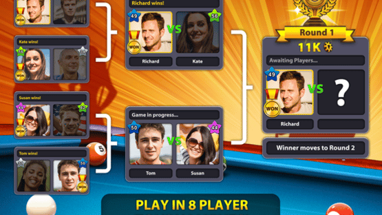 Play with friends! Play with Legends. Play the hit Miniclip 8 Ball Pool game on your mobile and become the best! Refine your skills in the practice arena, take on the world in 1-vs-1 matches, or enter tournaments to win trophies and exclusive cues!