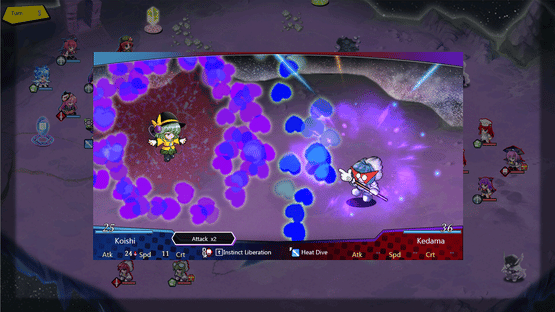 A Touhou Project SRPG game. Include: 30+PlayableUnits, 100 classes, 100+SpellCards, 100+EnemyUnits, 50+TouhouFanBgm and dozens of terrain types. Make Best Unit by combining class, talent, accessory, and tarot. U can even use SpellCards from other Units: sush as Koishi using FinalSpark