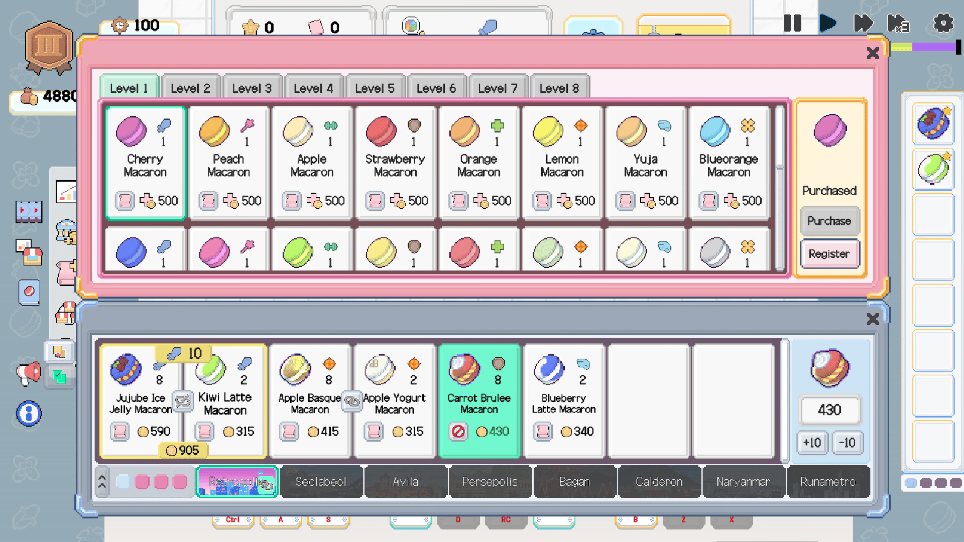 Macaronpolis is a simulation game that creates an efficient and universal process for customers to produce the products they want. You develop sales strategies by predicting customer demand, developing production designs, and sometimes finding solutions to problems faced by neighbors.