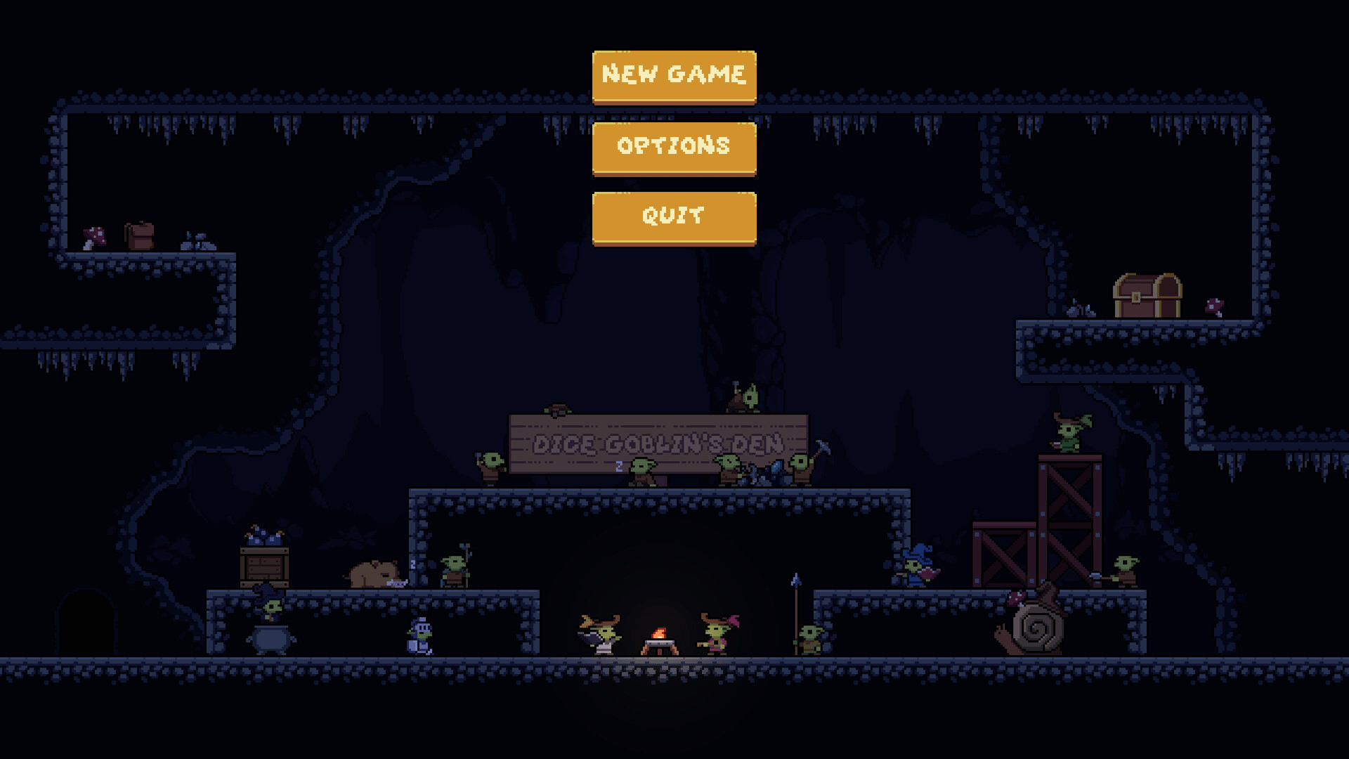 Dice Goblin's Den is a 2D side-scrolling Tower Defense Roguelite game where you defend your fellow Goblins from waves of "heroes" who have been given quests at the local tavern to pillage and loot your home! Grow your goblin den and strengthen your economy by journeying to different levels to gather more resources while fending off your enemies!