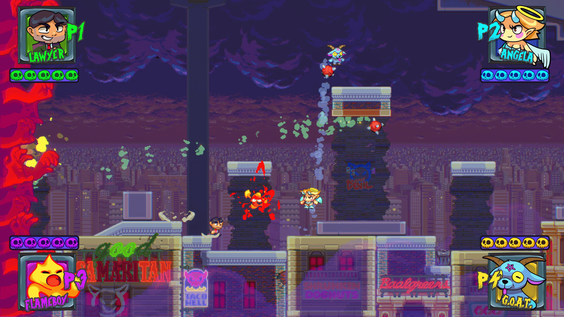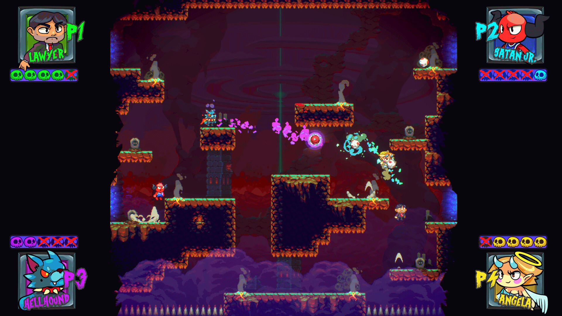 Grave Dodgers is a 2D, pixel art, dodgeball brawler for 2-4 players. Throw, dodge, and parry your way through a silly version of hell as one of the underworld's kooky characters. Inspired by our favorite local couch multiplayer games - but in hell! Kill your friends and have a ball!