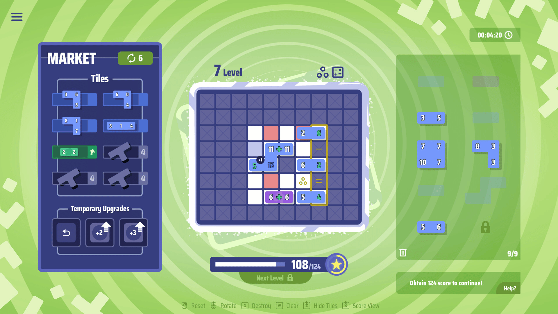 Tile Trials is a tile-placing, number based puzzle game for the casual strategist. Place a variety of familiar shapes onto increasingly difficult layouts to maximize your score and surpass each level threshold. Iterative gameplay, mind bending challenges, and hand-crafted puzzles await!