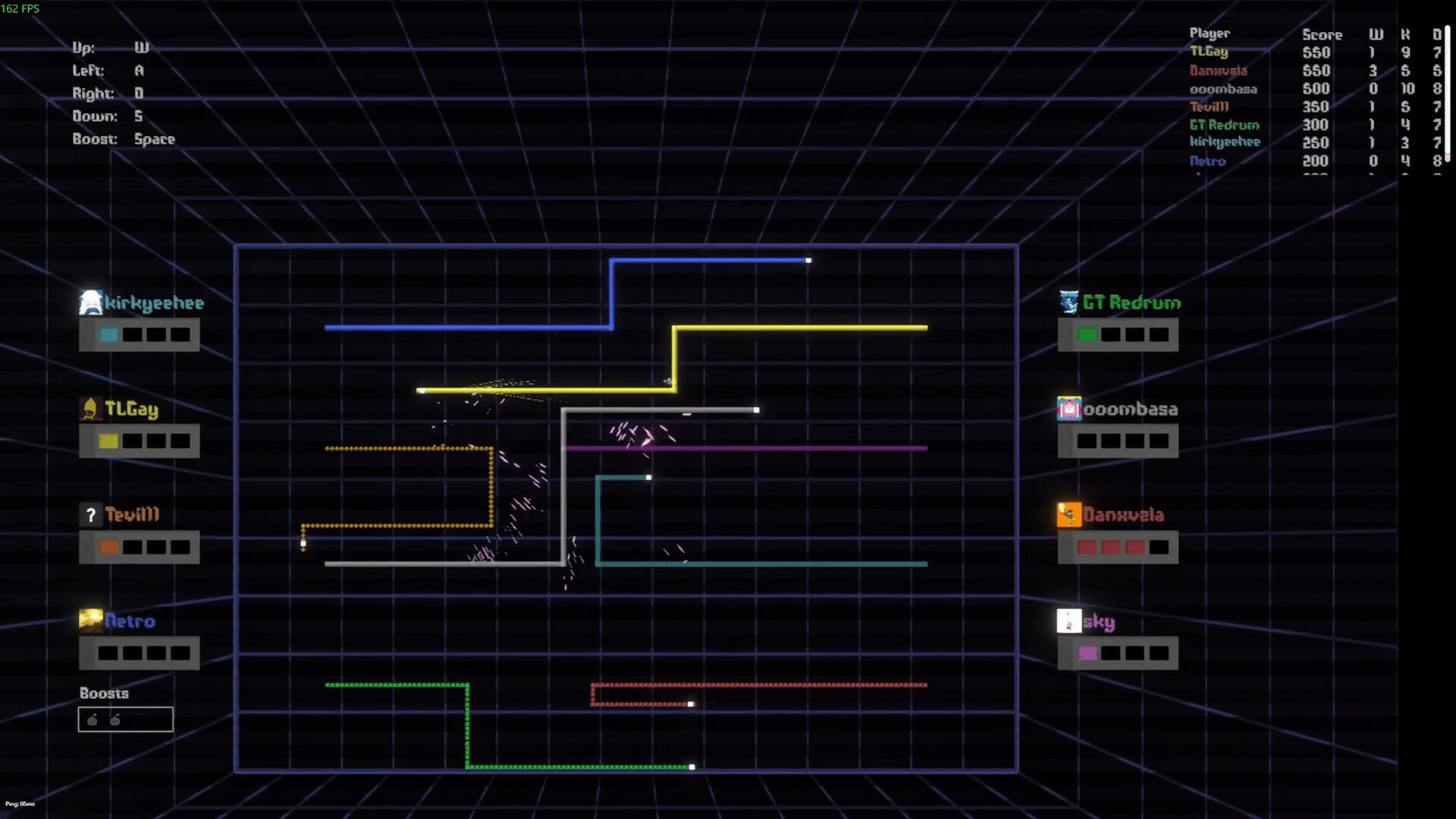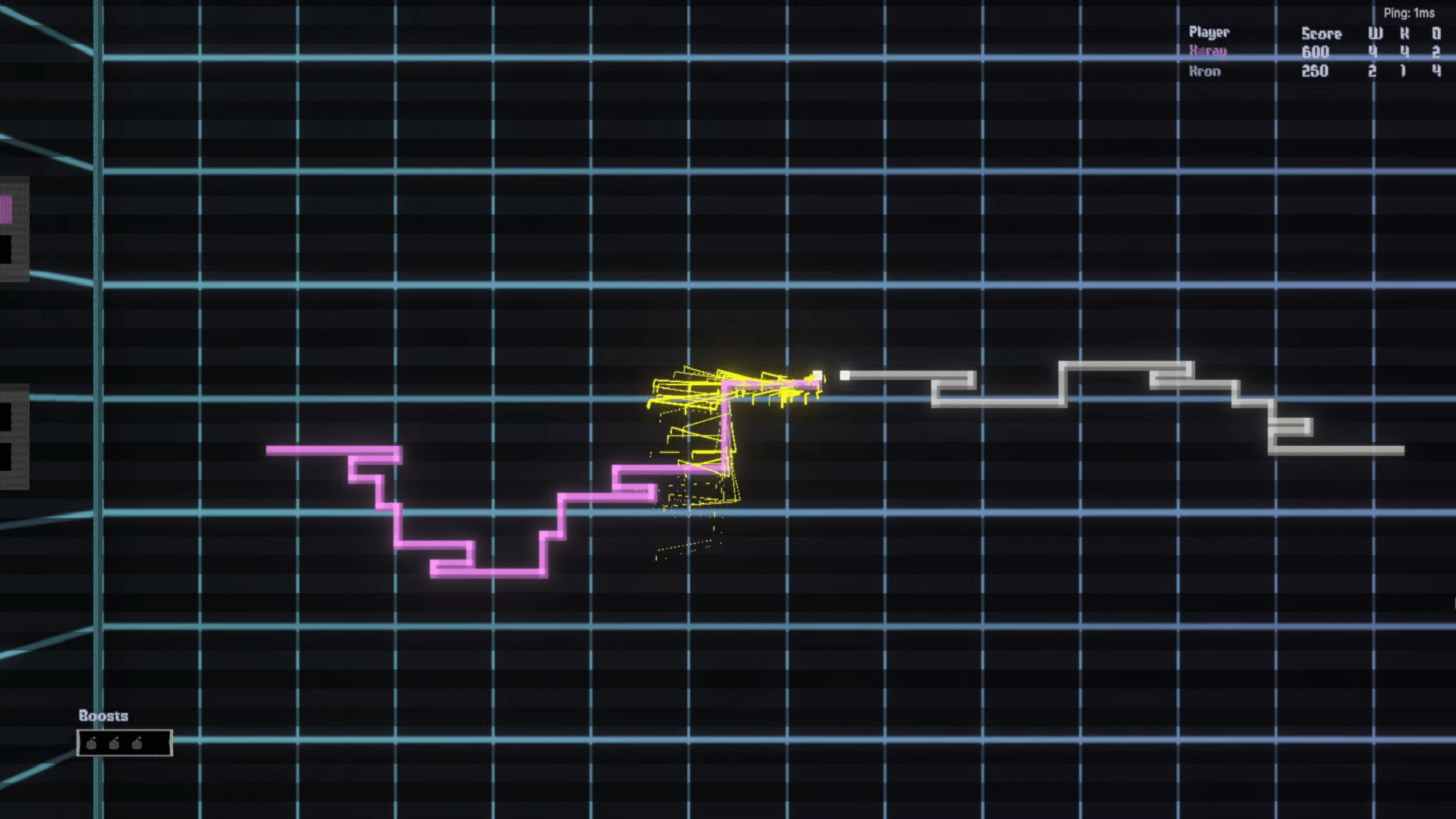 Neon Grid is a 2D online multiplayer experience based on Snake and TRON. Boost, dash, and trap your opponents until only one person or team is left standing. Leave behind a trail that fills the map as you play, navigate through it with care, as hitting any obstacle means imminent death.