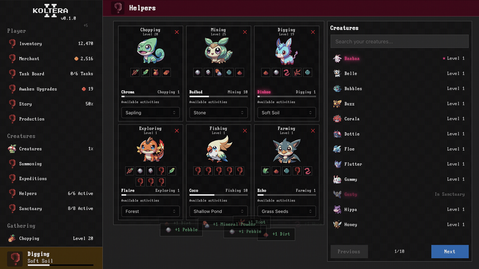Gather resources, craft items, and grow a team of creatures in this relaxed incremental idler RPG. Automate your skills, send creatures on expeditions, and keep progressing even while offline.